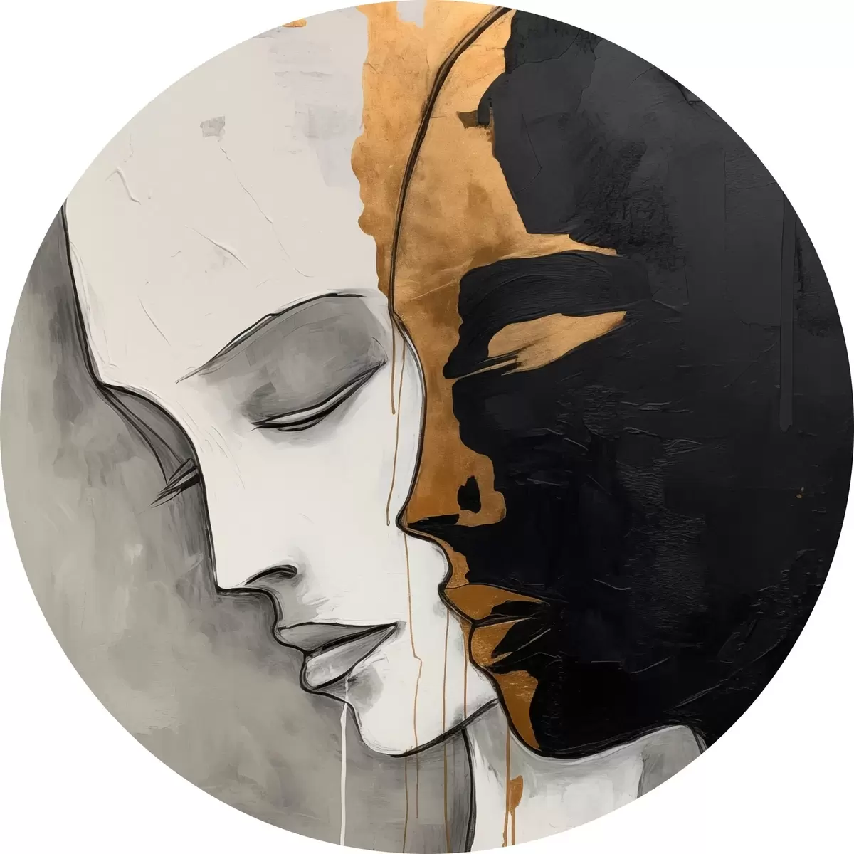 Apaļas gleznas Kontrastējoši silueti ar abstraktiem akcentiem r43280