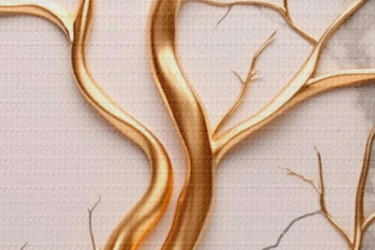 Smalkais diegu pinums uz šī audekla atgādina profesionālu mākslinieku audeklu virsmu.