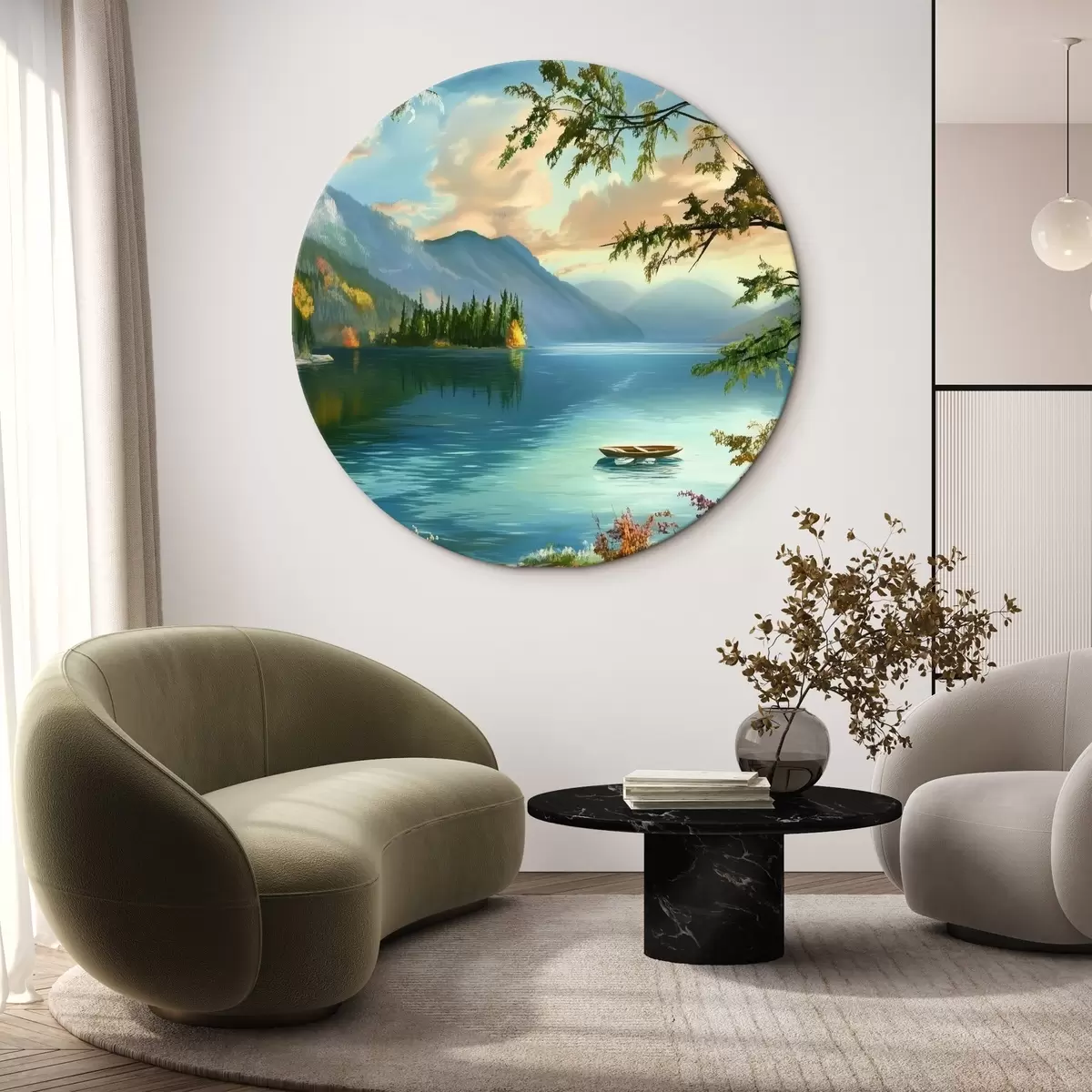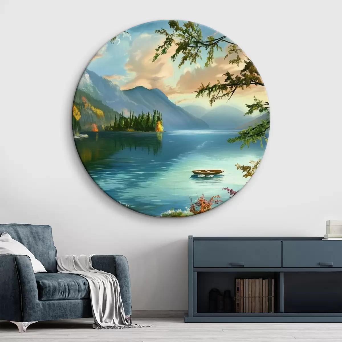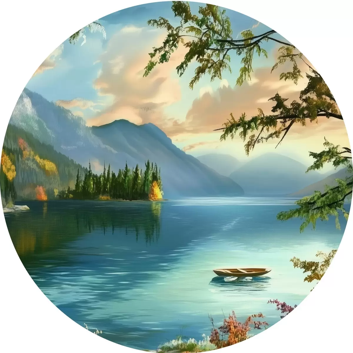 Apaļas gleznas Ezera ainava kalnos r43286
