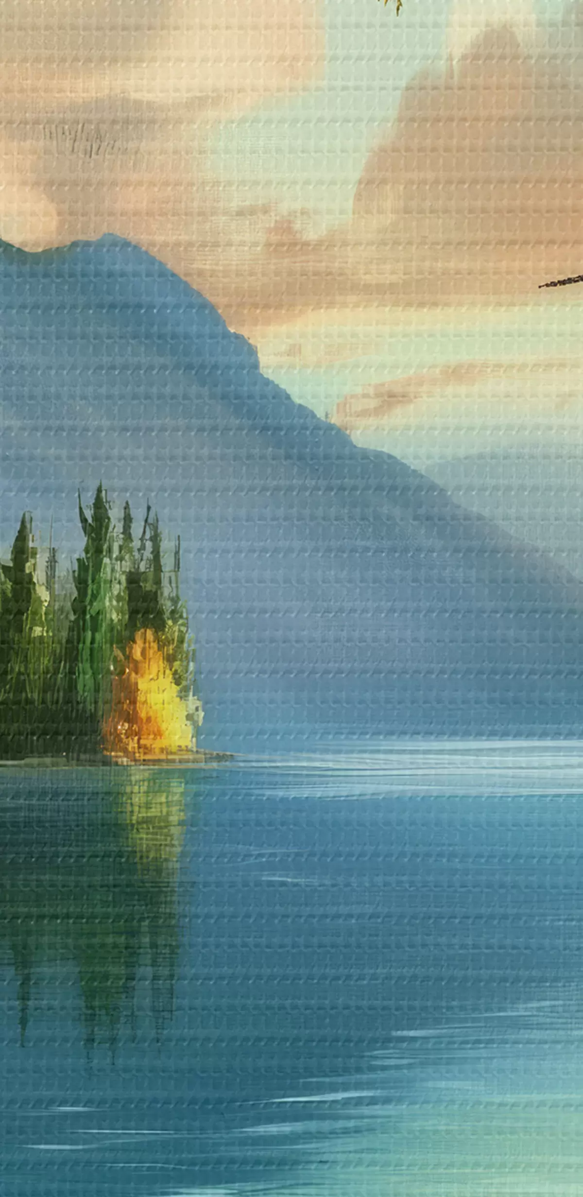 Smalkais diegu pinums uz šī audekla atgādina profesionālu mākslinieku audeklu virsmu.