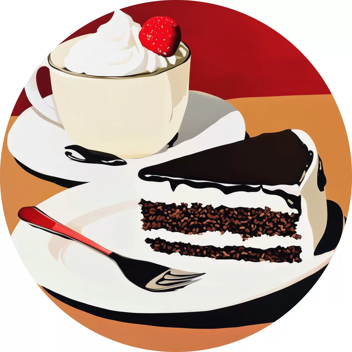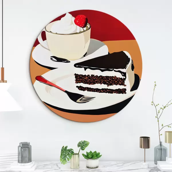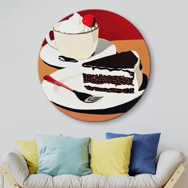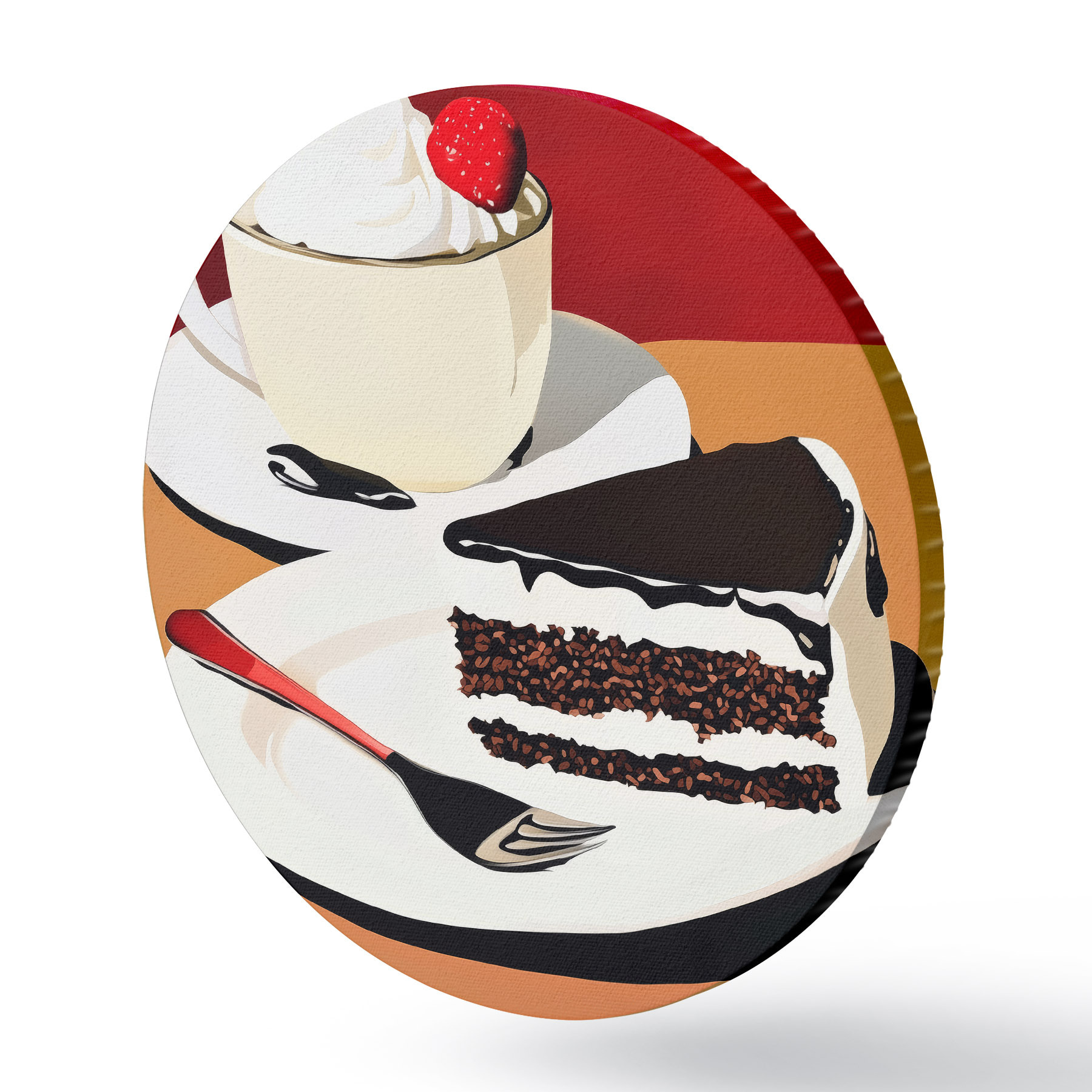 Apaļas gleznas Kafijas tasīte un gabaliņš kūkas r43293