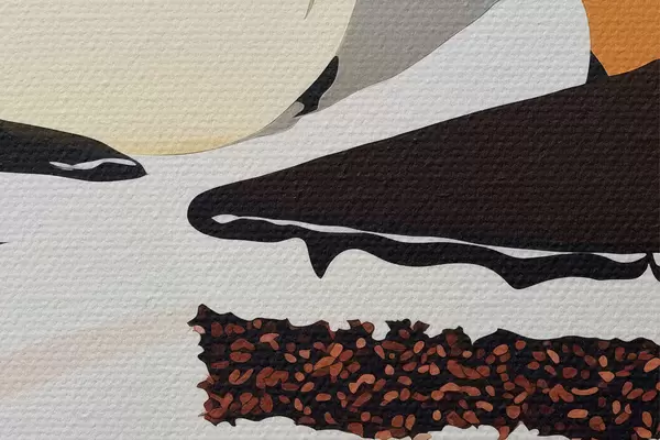 Smalkais diegu pinums uz šī audekla atgādina profesionālu mākslinieku audeklu virsmu.
