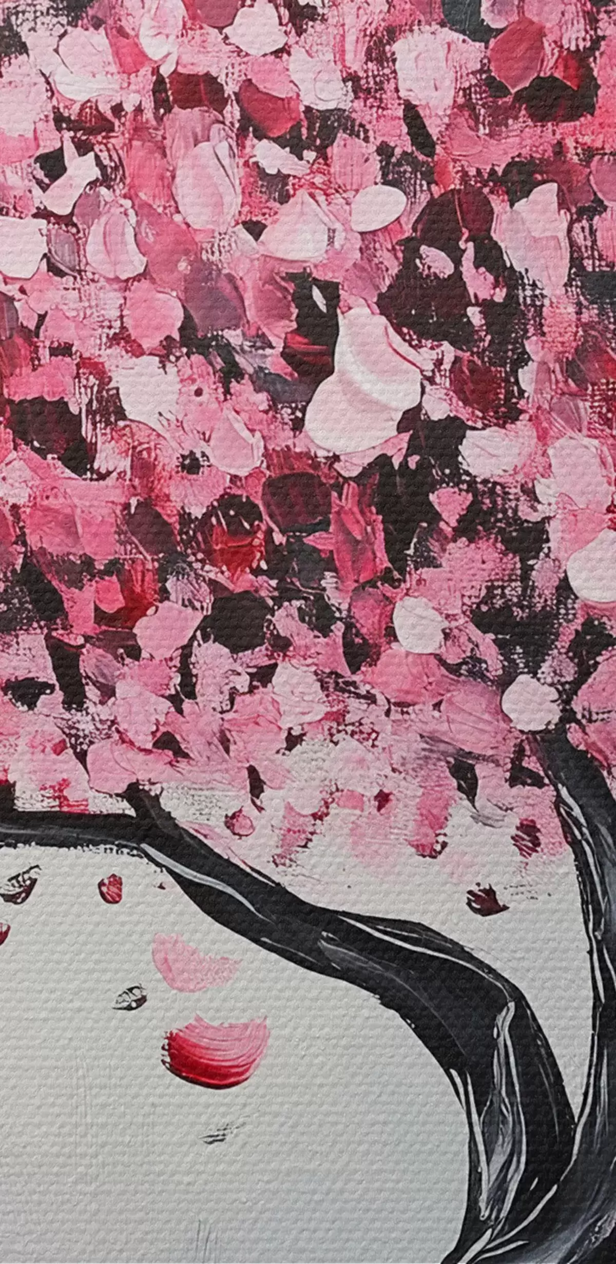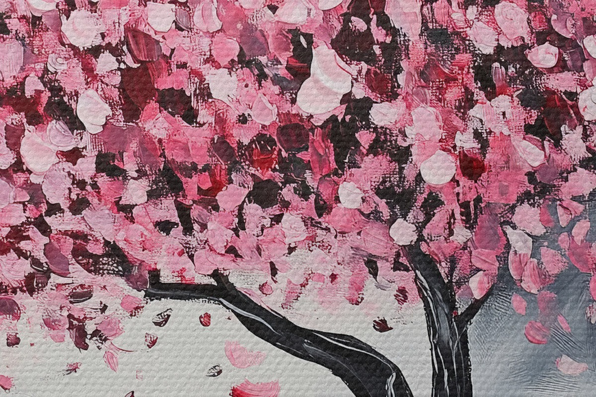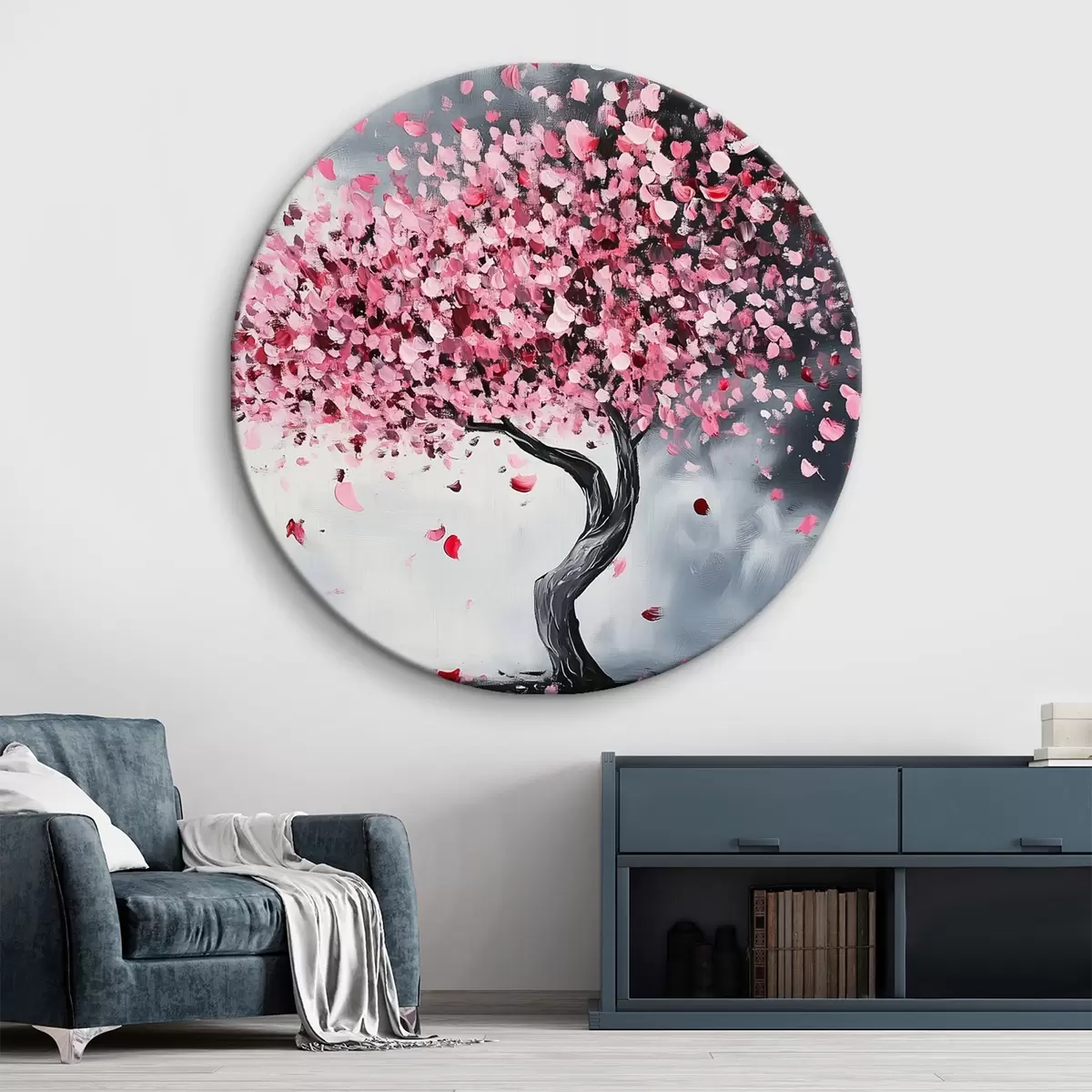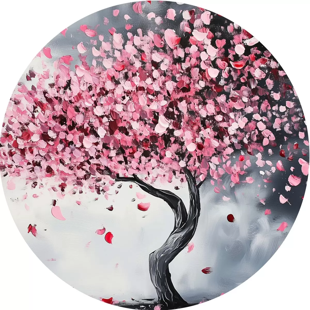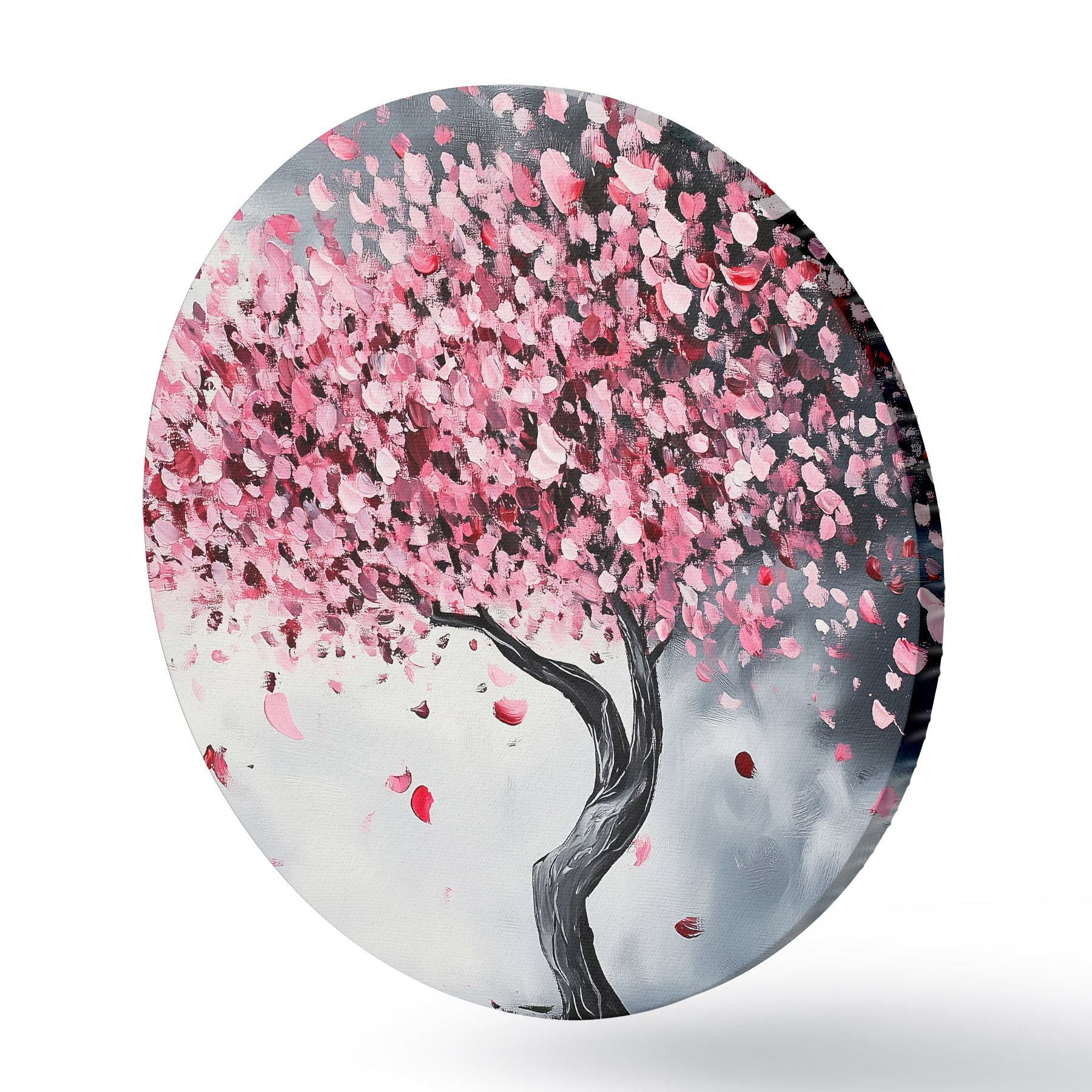 Apaļas gleznas Rozā ziedošs koks uz pelēka fona r43299