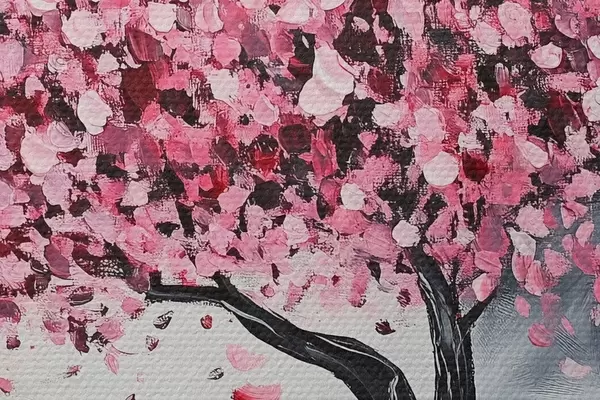 Attēls Rozā ziedošs koks uz pelēka fona Nr r43299