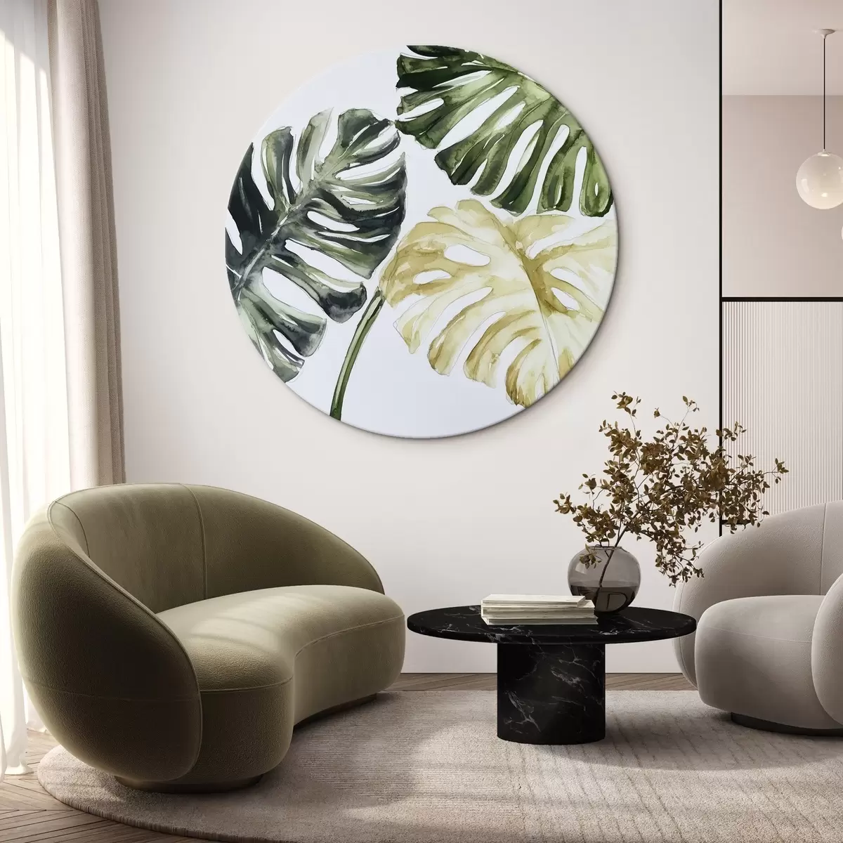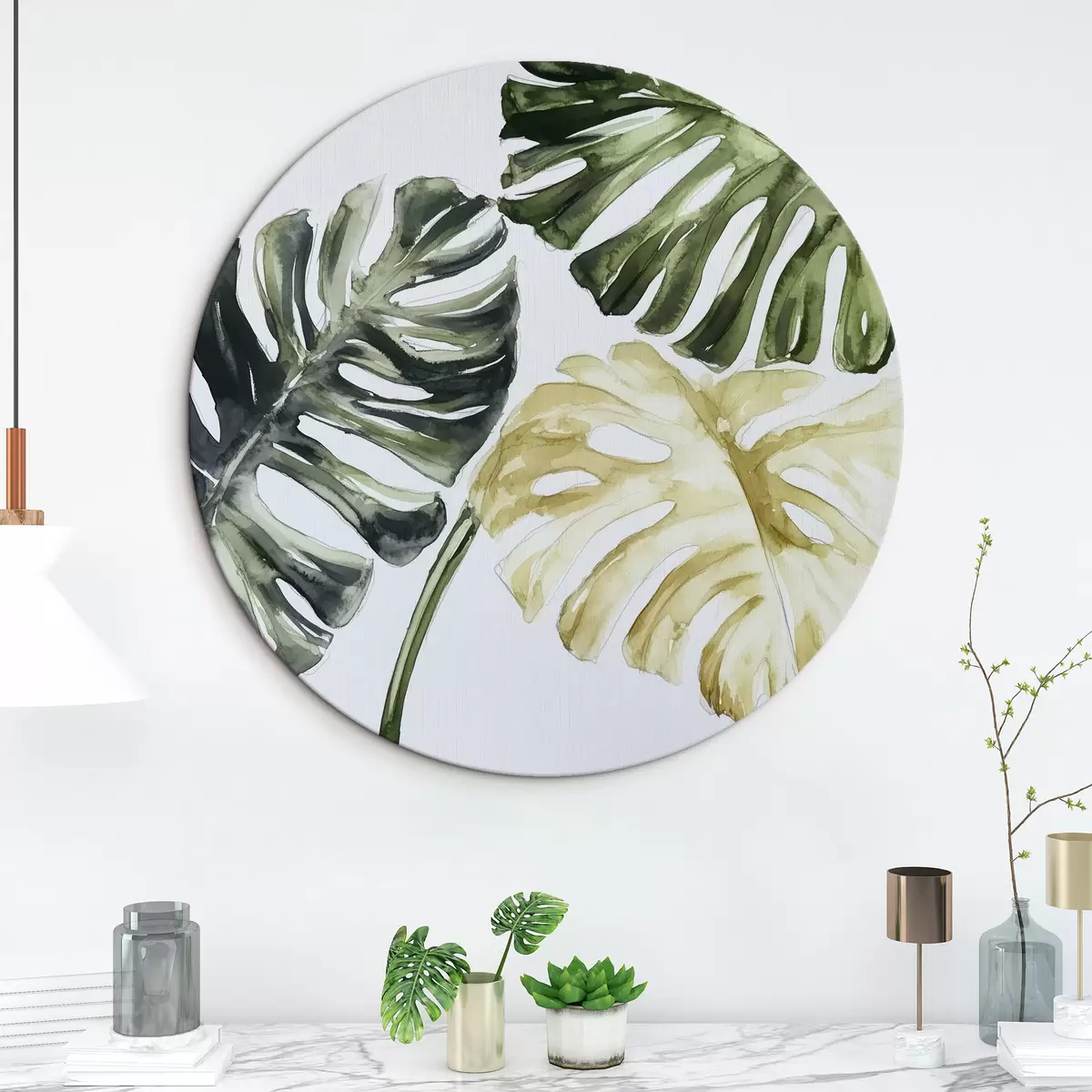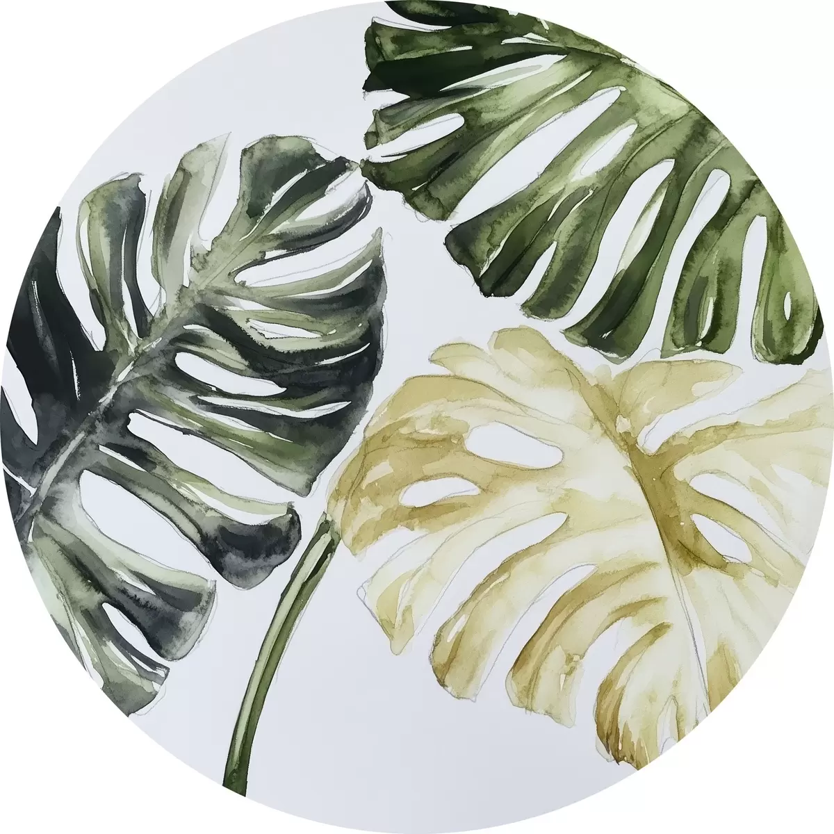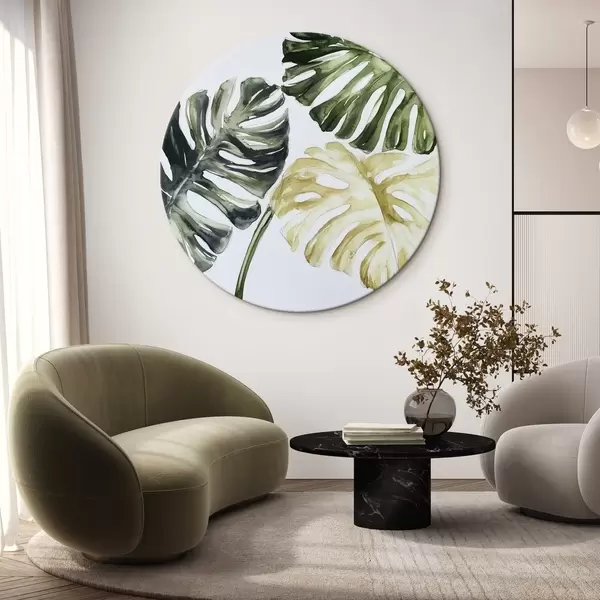 Apaļas gleznas Tropu lapas uz balta fona r43304
