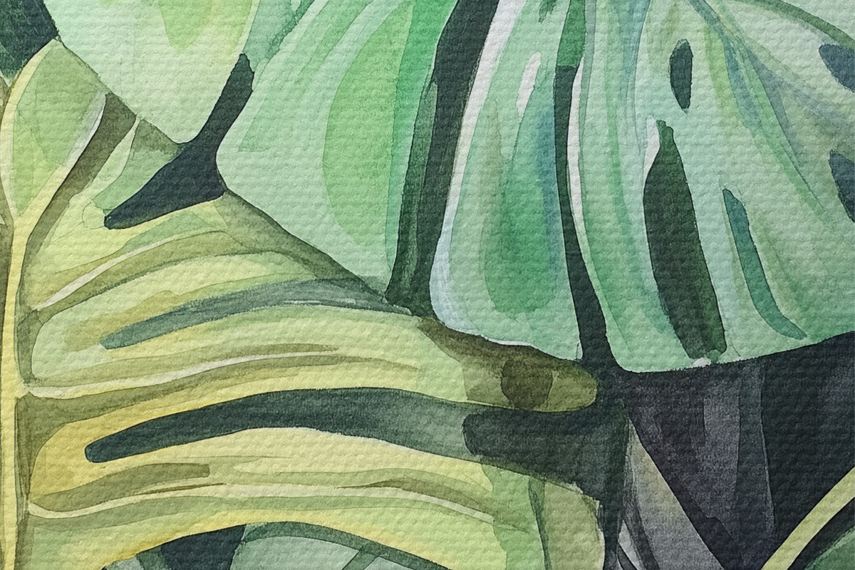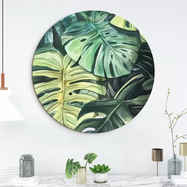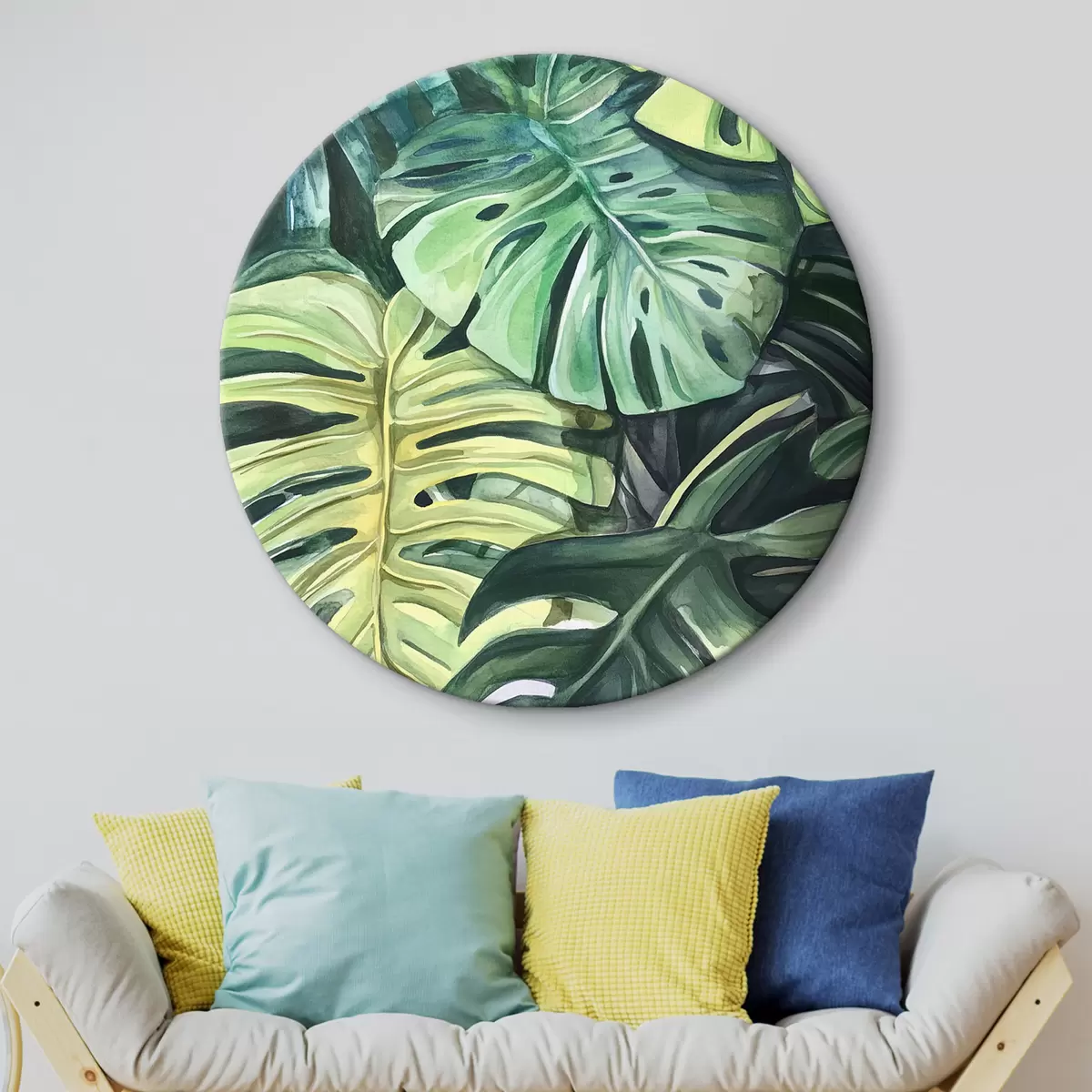 Apaļas gleznas Tropu lapas uz balta fona r43305