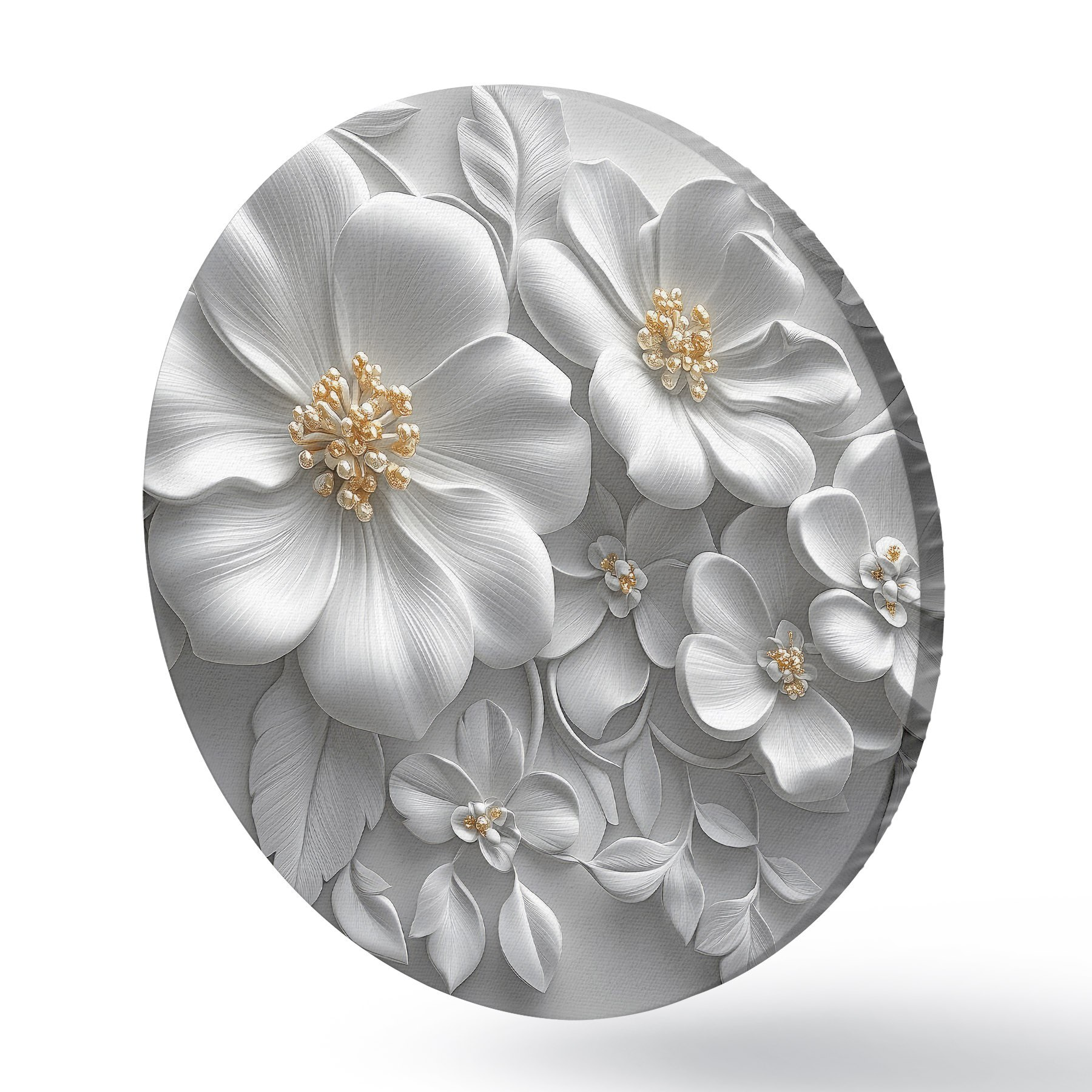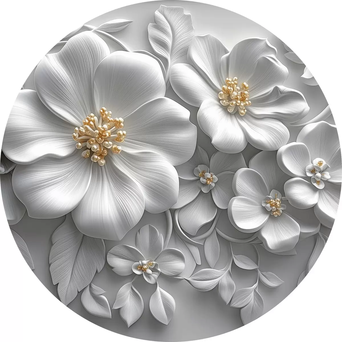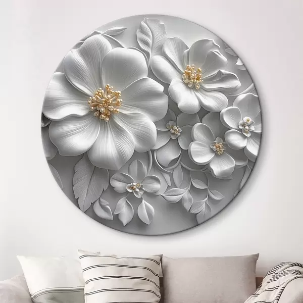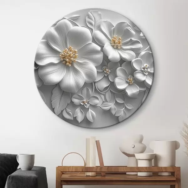 Apaļas gleznas 3D pelēki ziedi ar dzeltenu akcentu r43310
