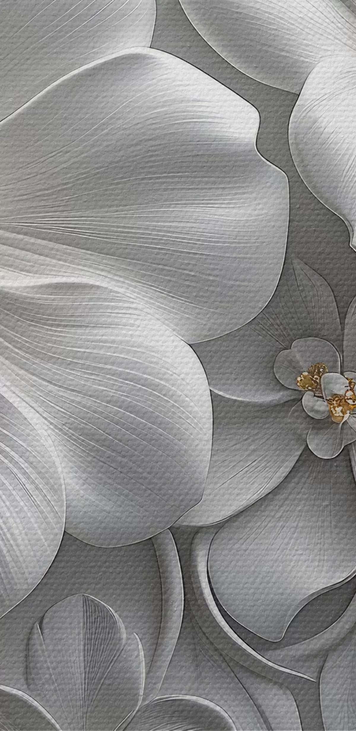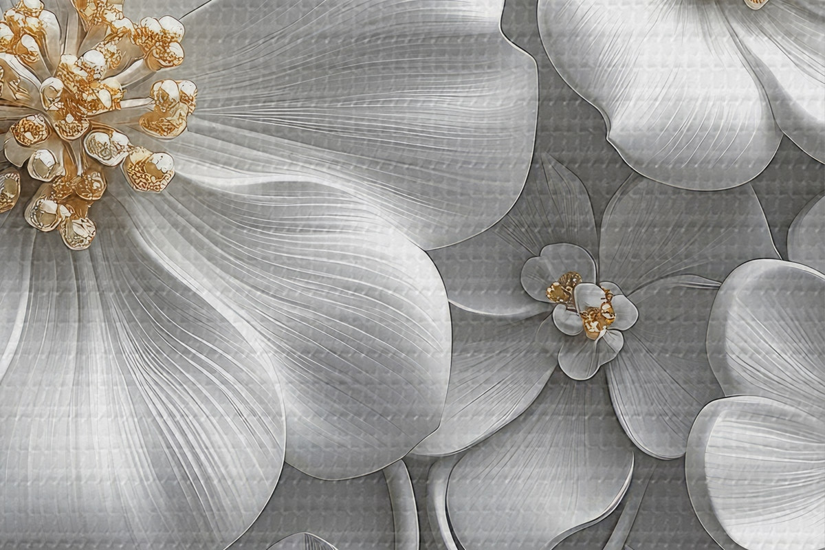 Attēls 3D pelēki ziedi ar dzeltenu akcentu Nr r43310