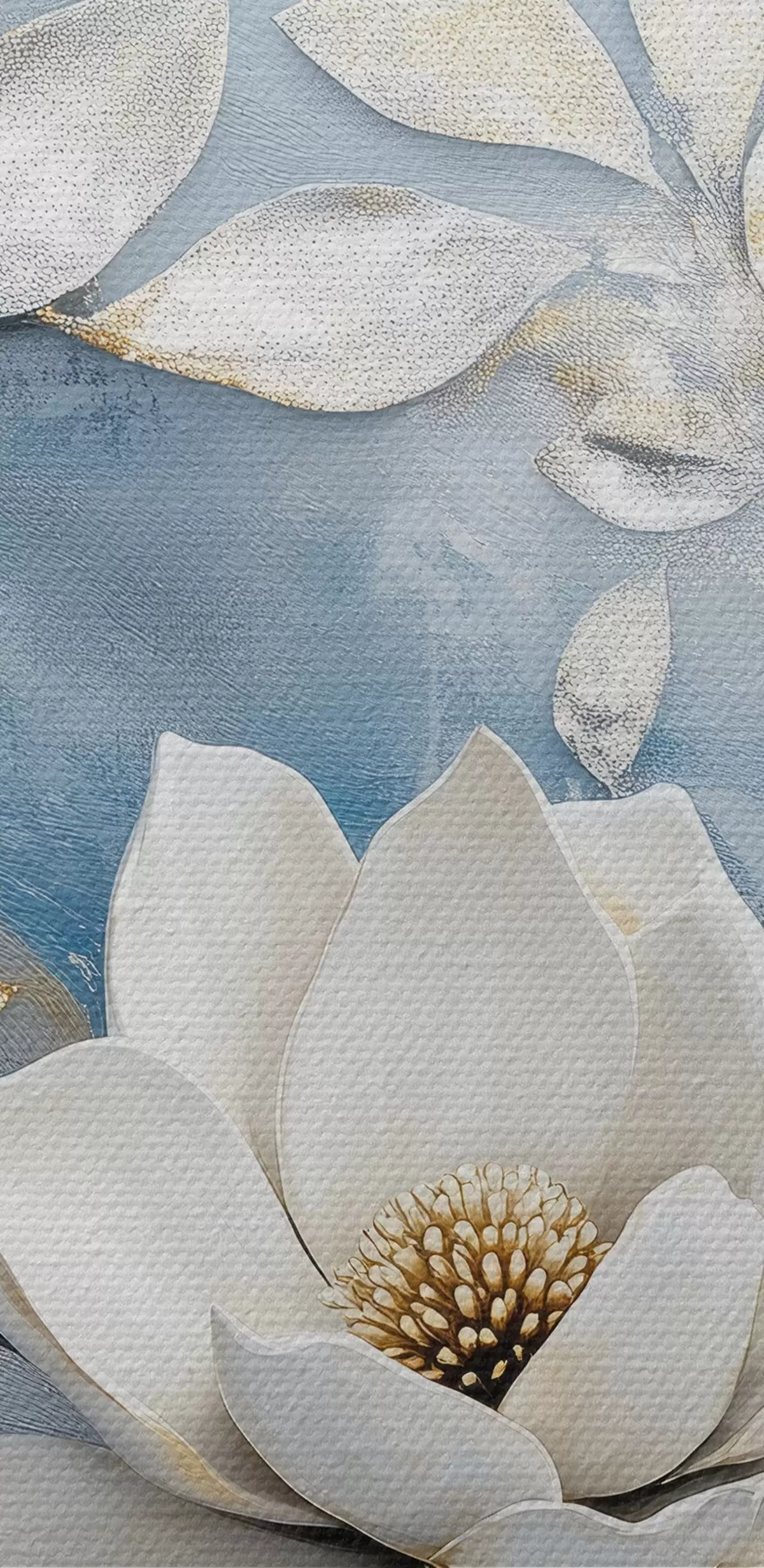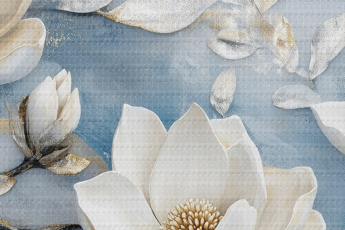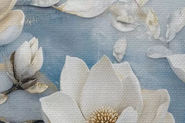 Attēls Magnolijas zars uz abstrakta zili dzeltena fona Nr r43323
