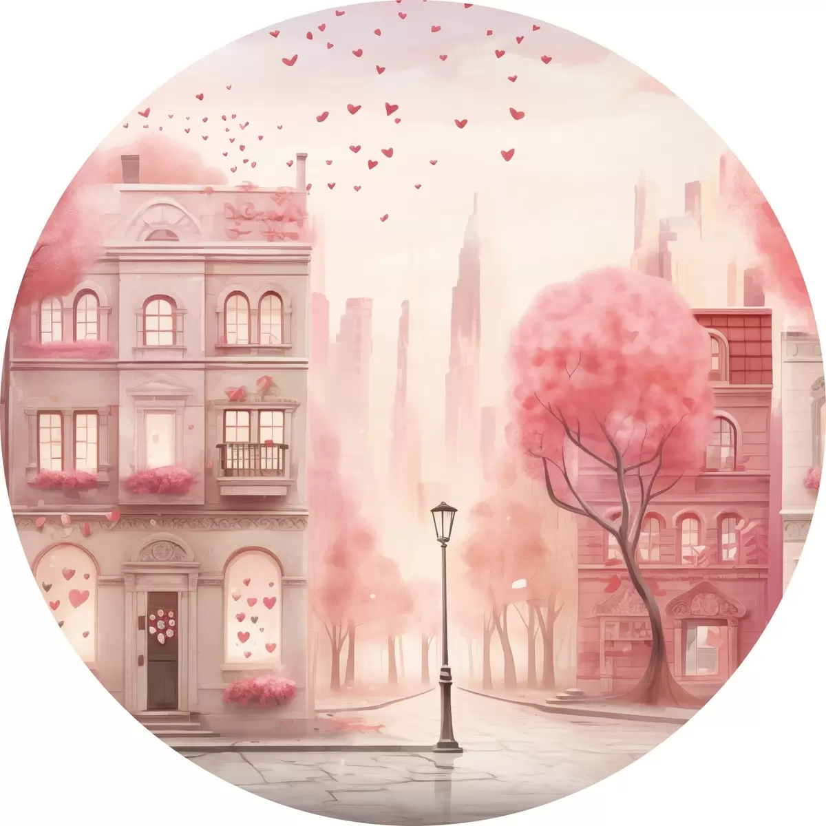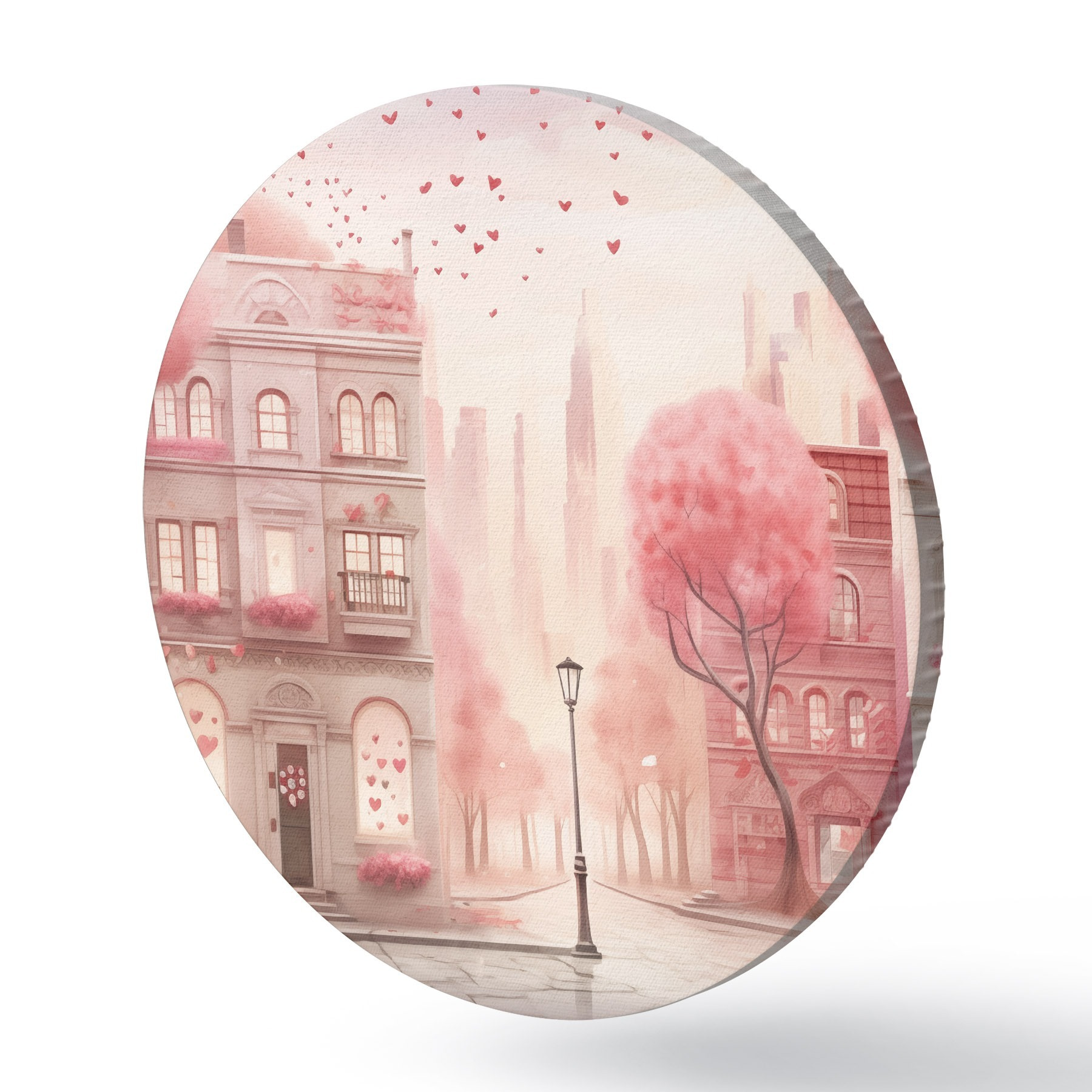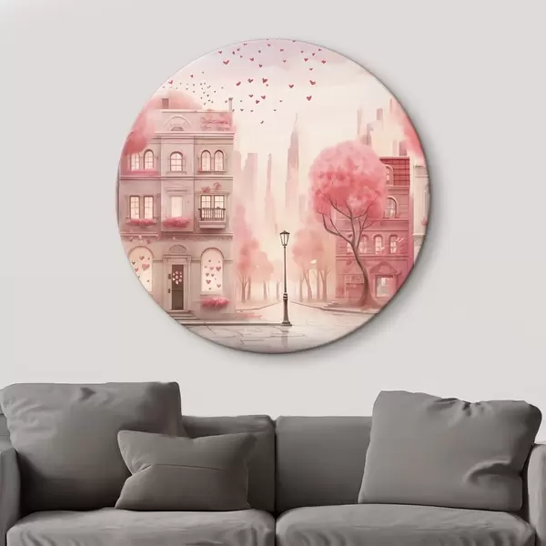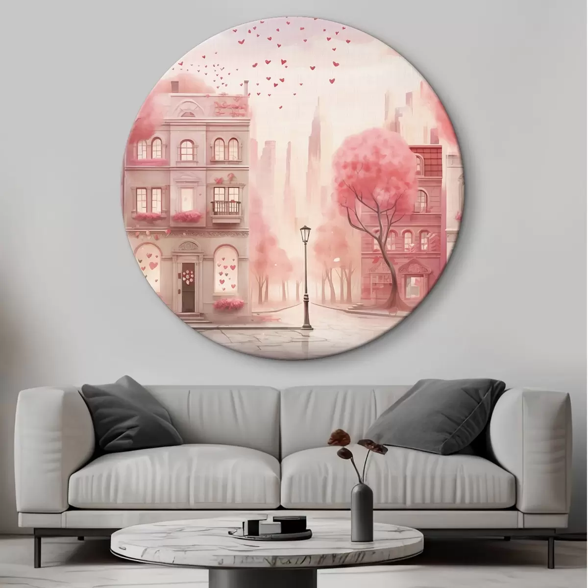 Apaļas gleznas Romantiska rozā iela ar sirsniņām r43324
