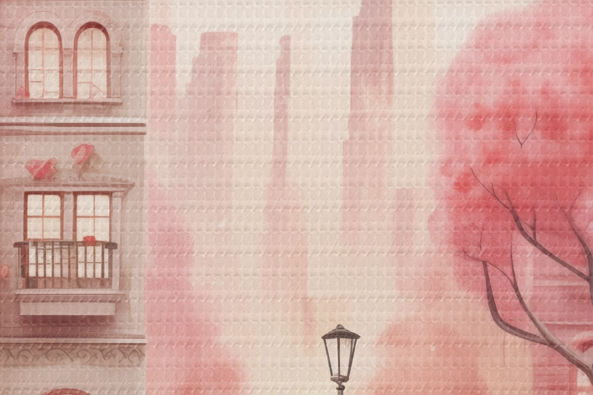 Attēls Romantiska rozā iela ar sirsniņām Nr r43324