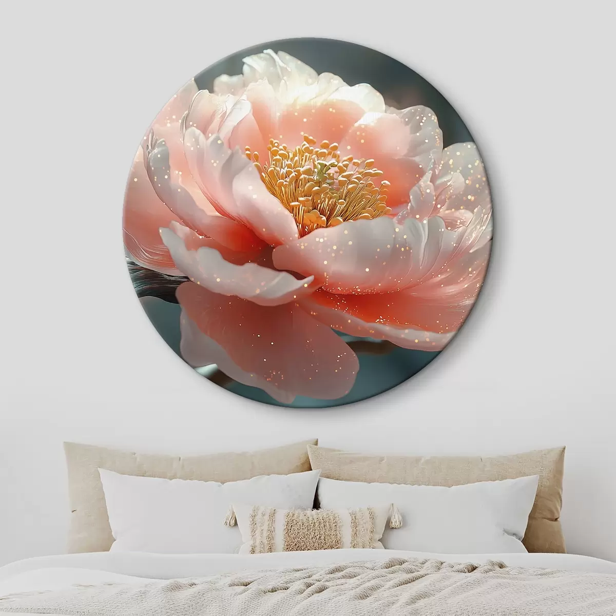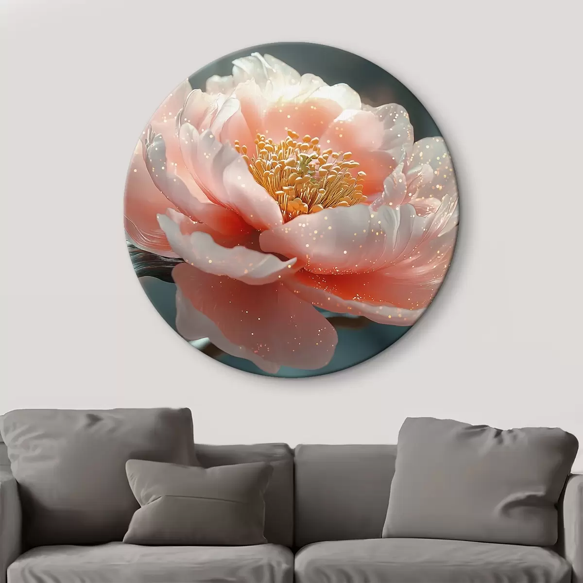 Apaļas gleznas Smalks zieds uz zara ar saules stariem r43326