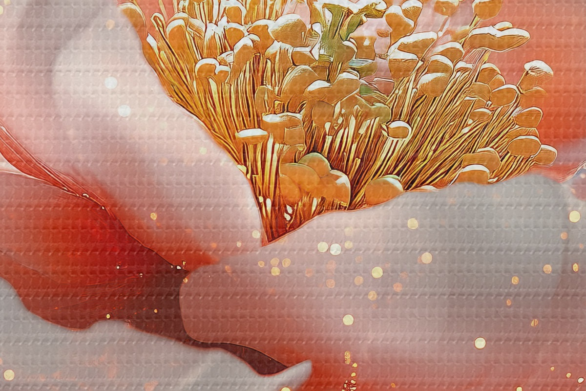 Smalkais diegu pinums uz šī audekla atgādina profesionālu mākslinieku audeklu virsmu.