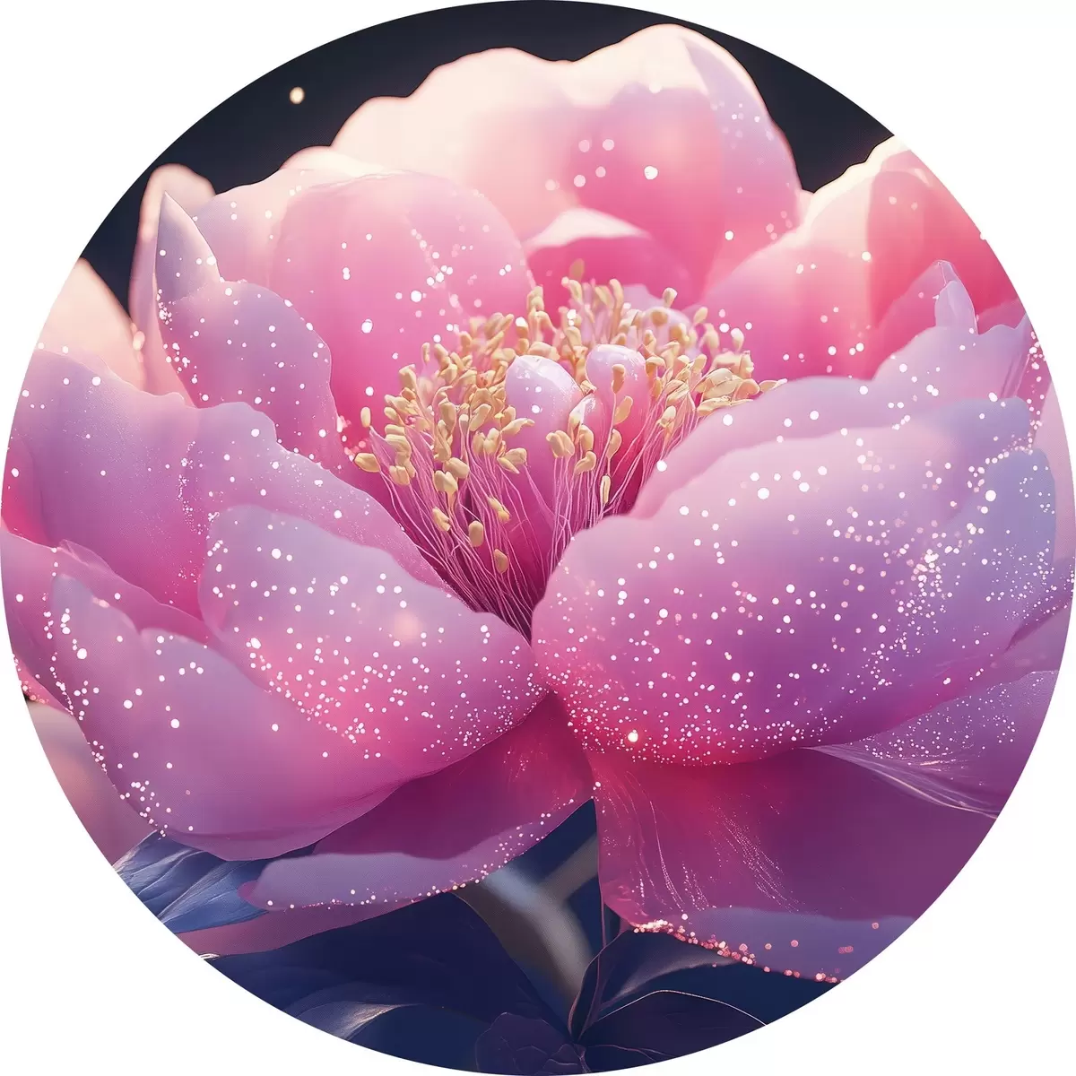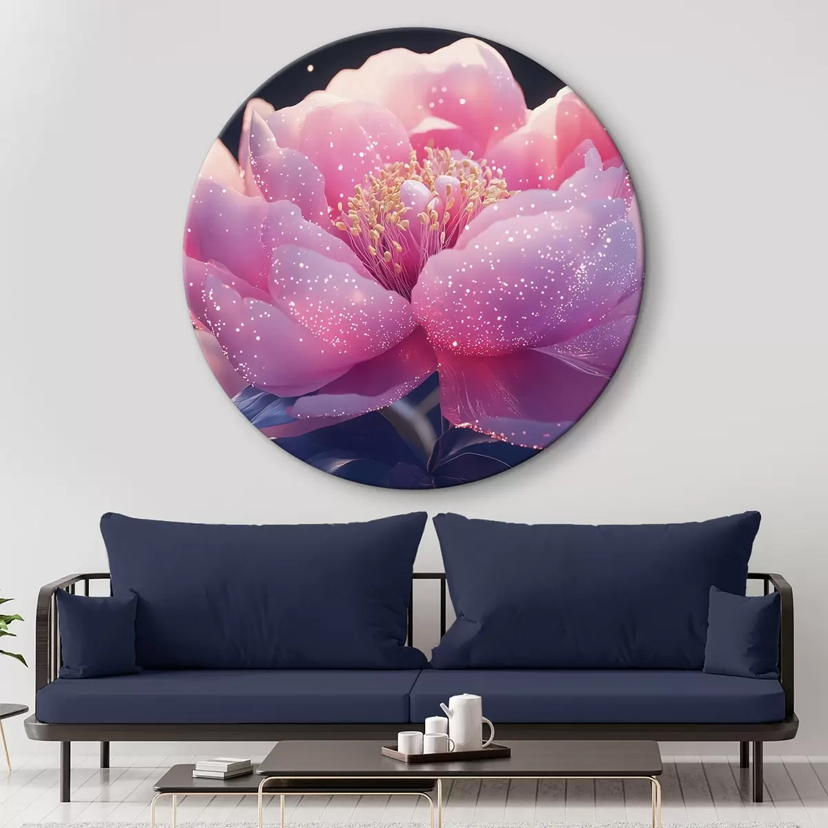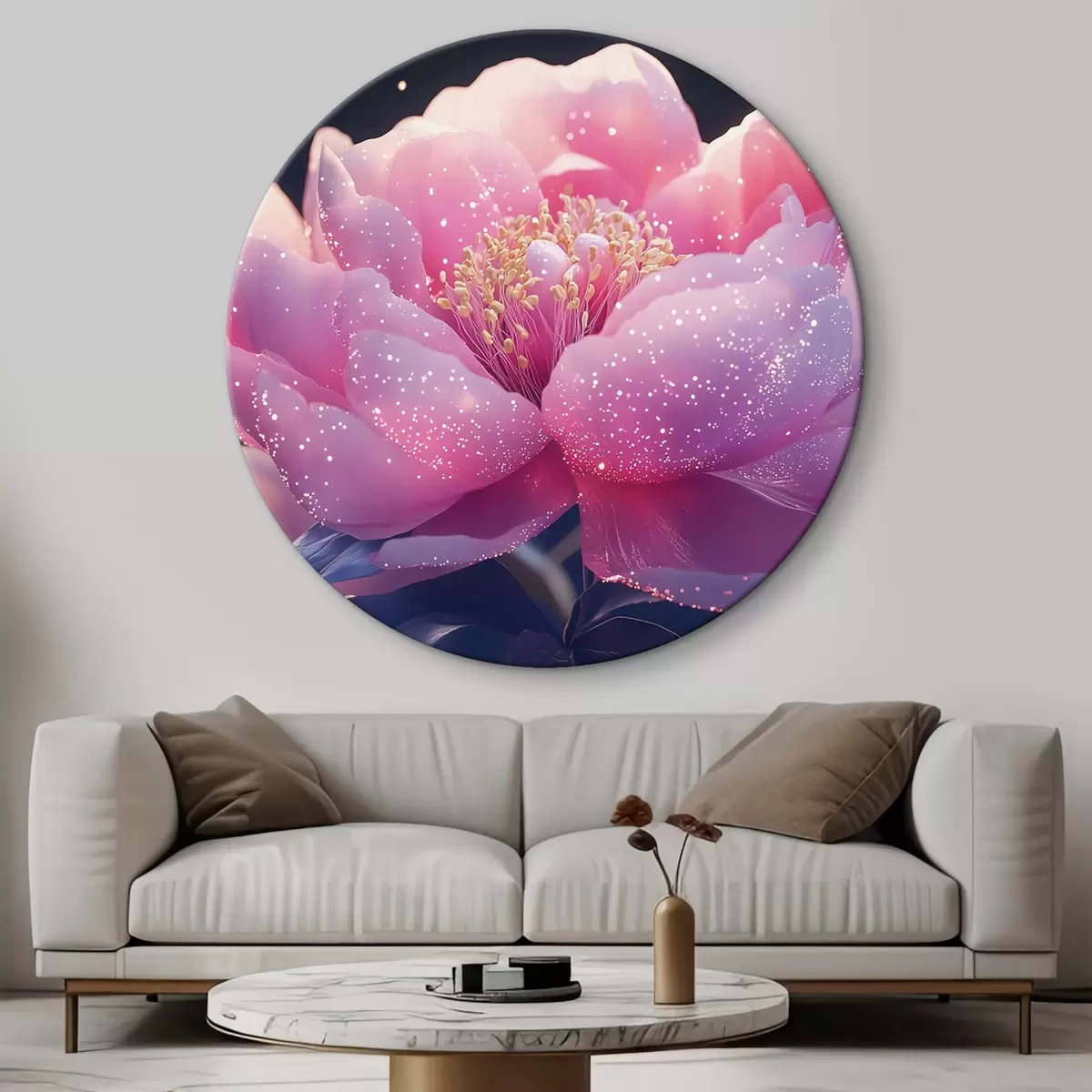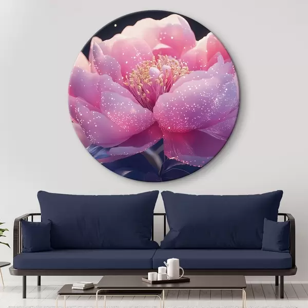 Apaļas gleznas Liels maigi rozā zieds ar saules stariem r43327
