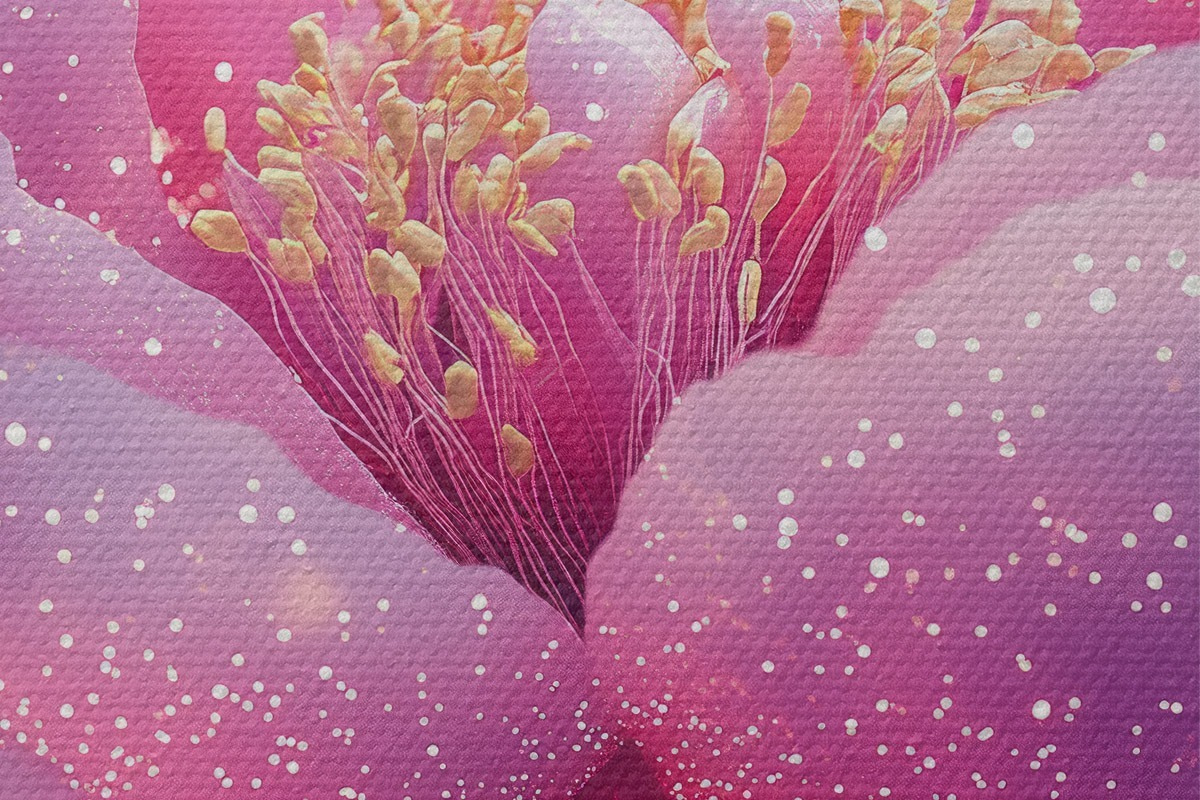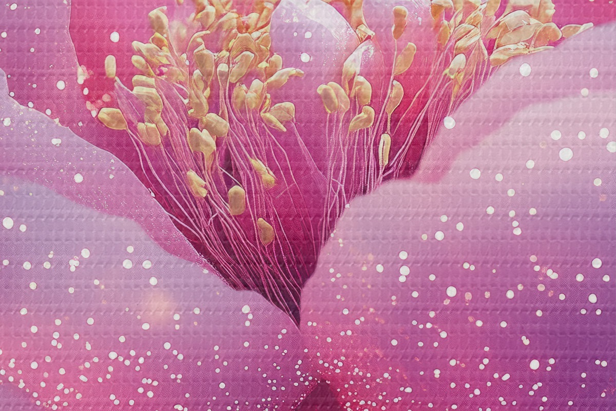 Smalkais diegu pinums uz šī audekla atgādina profesionālu mākslinieku audeklu virsmu.