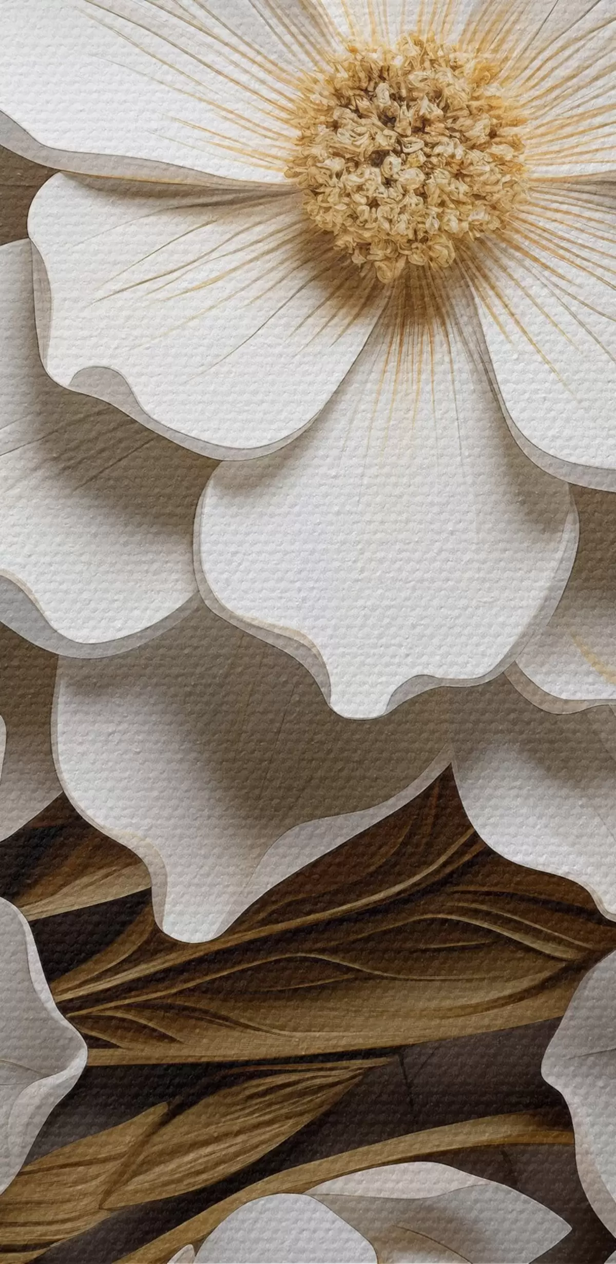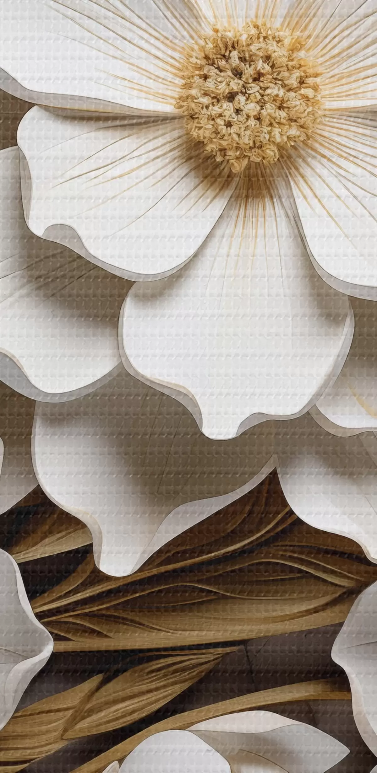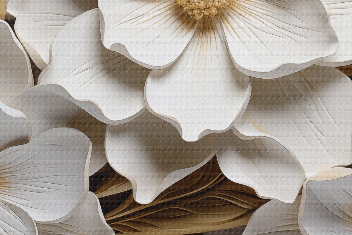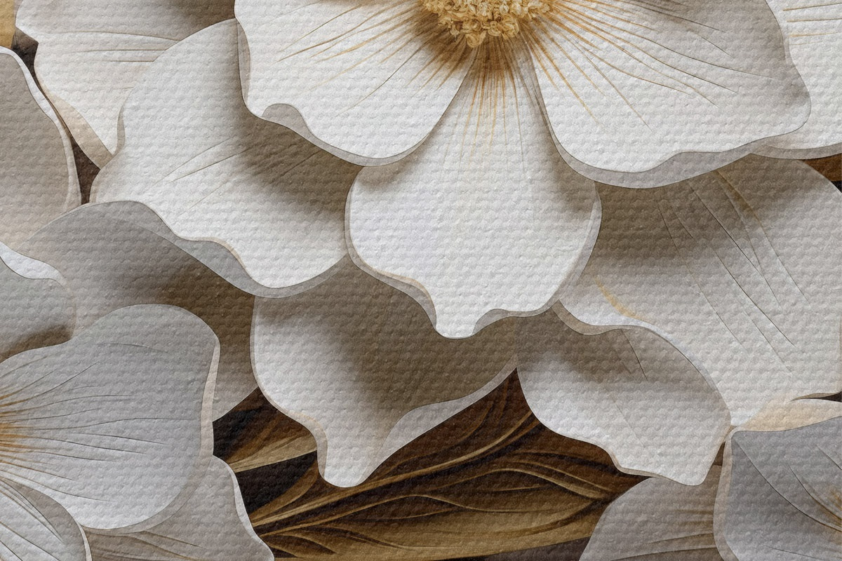 Attēls Balti ziedi reljefa freskas stilā ar dzelteniem akcentiem Nr r43330