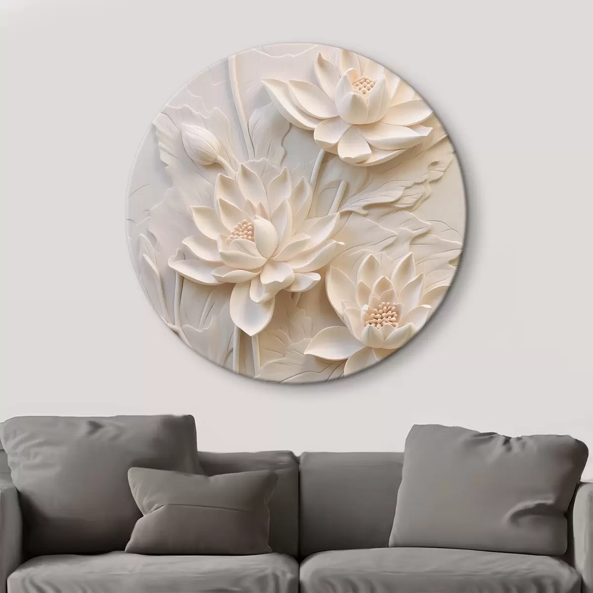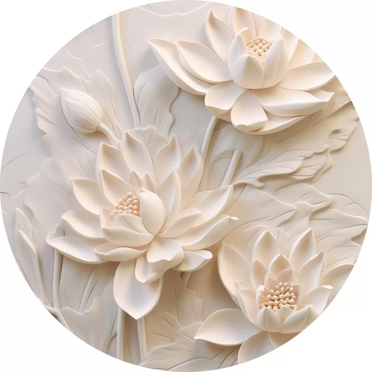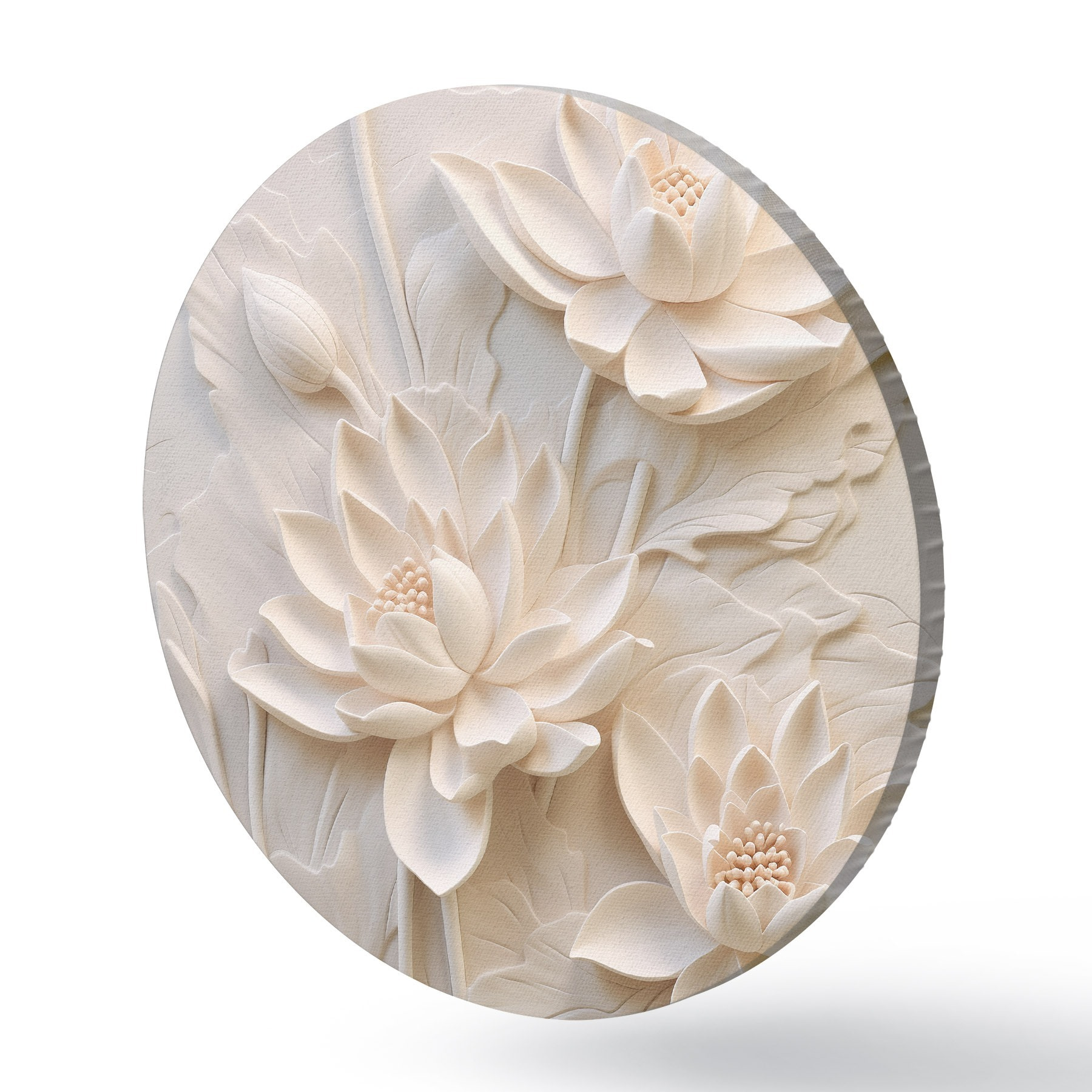 Apaļas gleznas Balta lējuma, imitācija, ziedi r43334