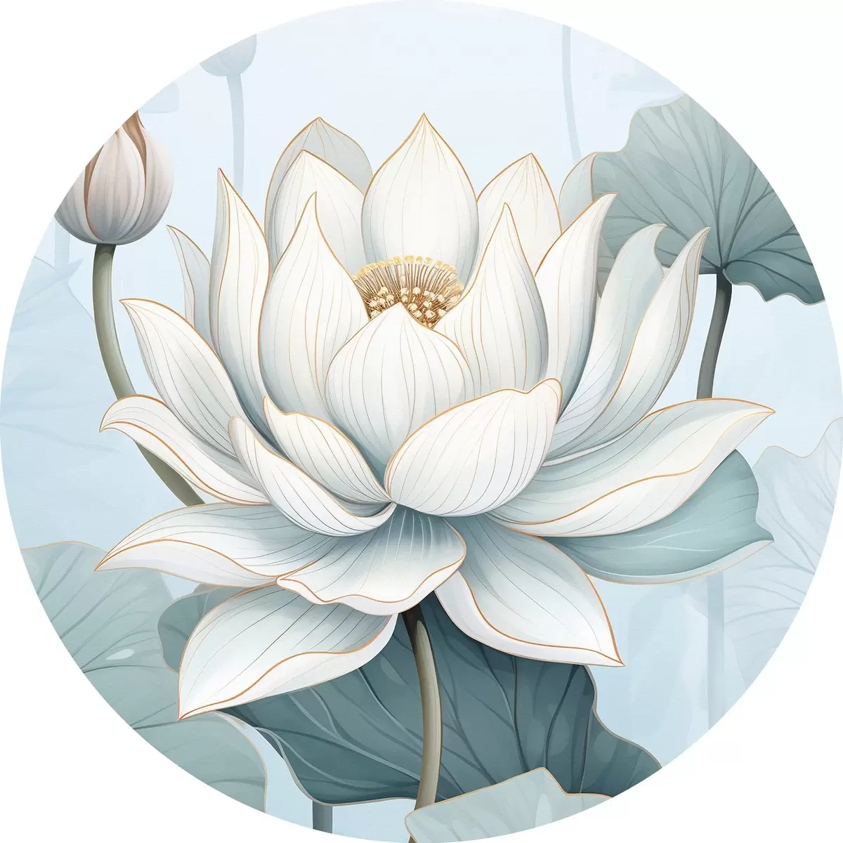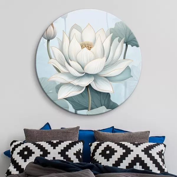 Apaļas gleznas Lotosa ziedi, akvareļa imitācija r43340