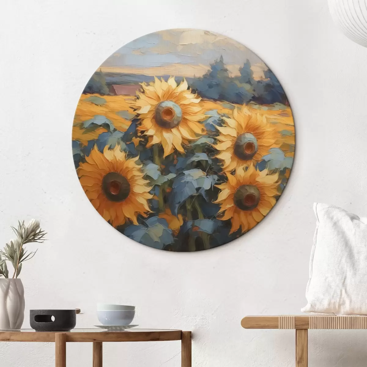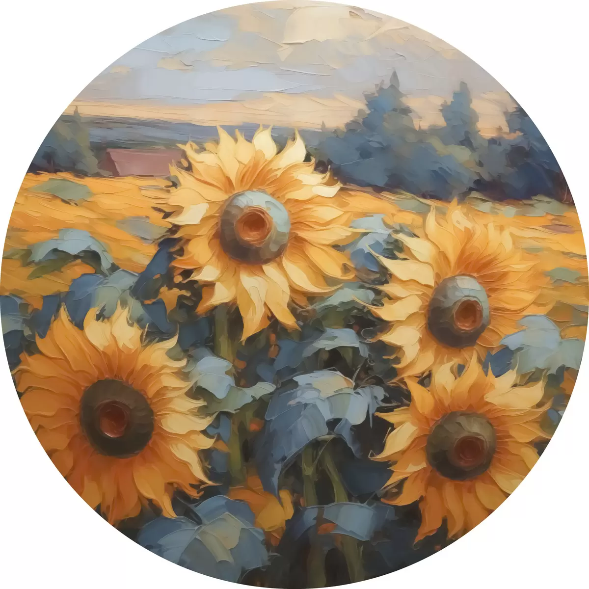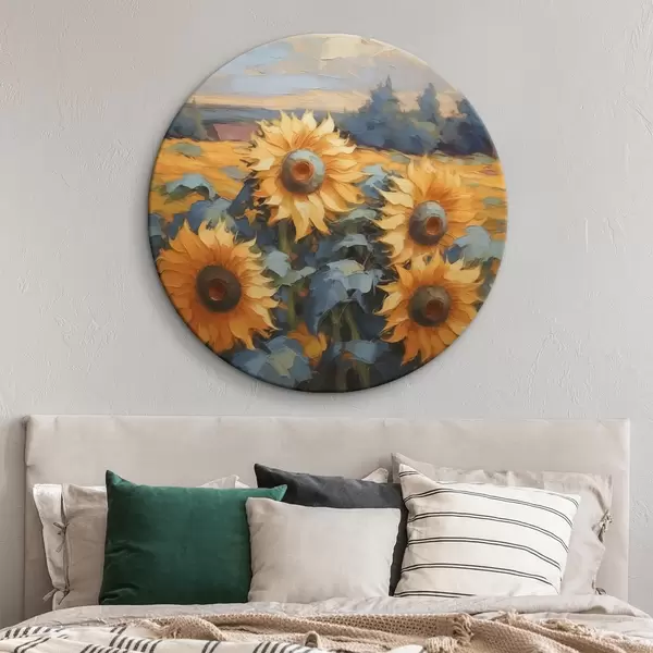 Apaļas gleznas Saulespuķes imitācija glezniecība r43359
