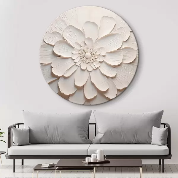 Apaļas gleznas Liels balts zieds ar apjomīgām ziedlapiņām r43364