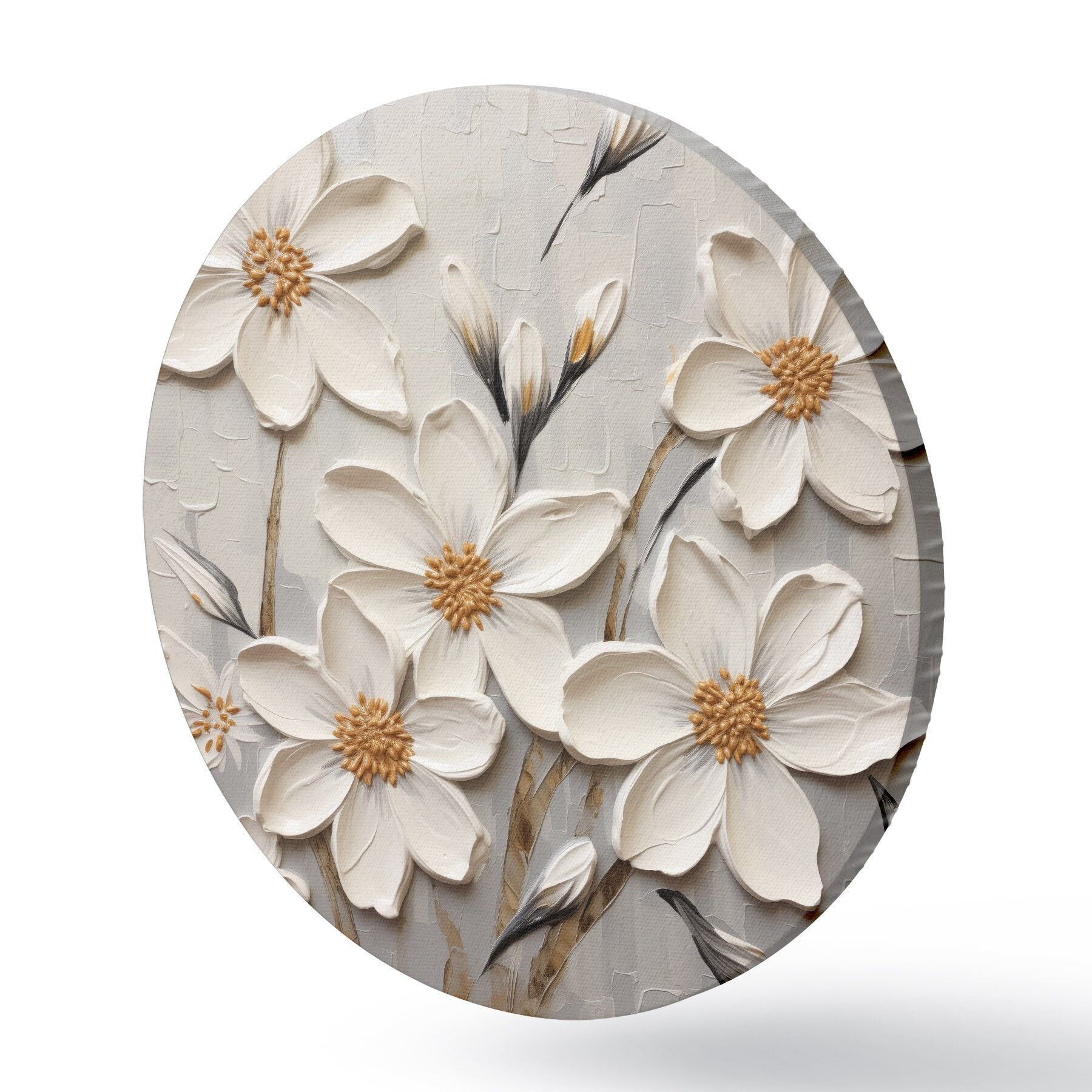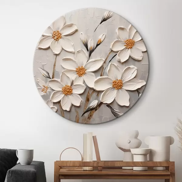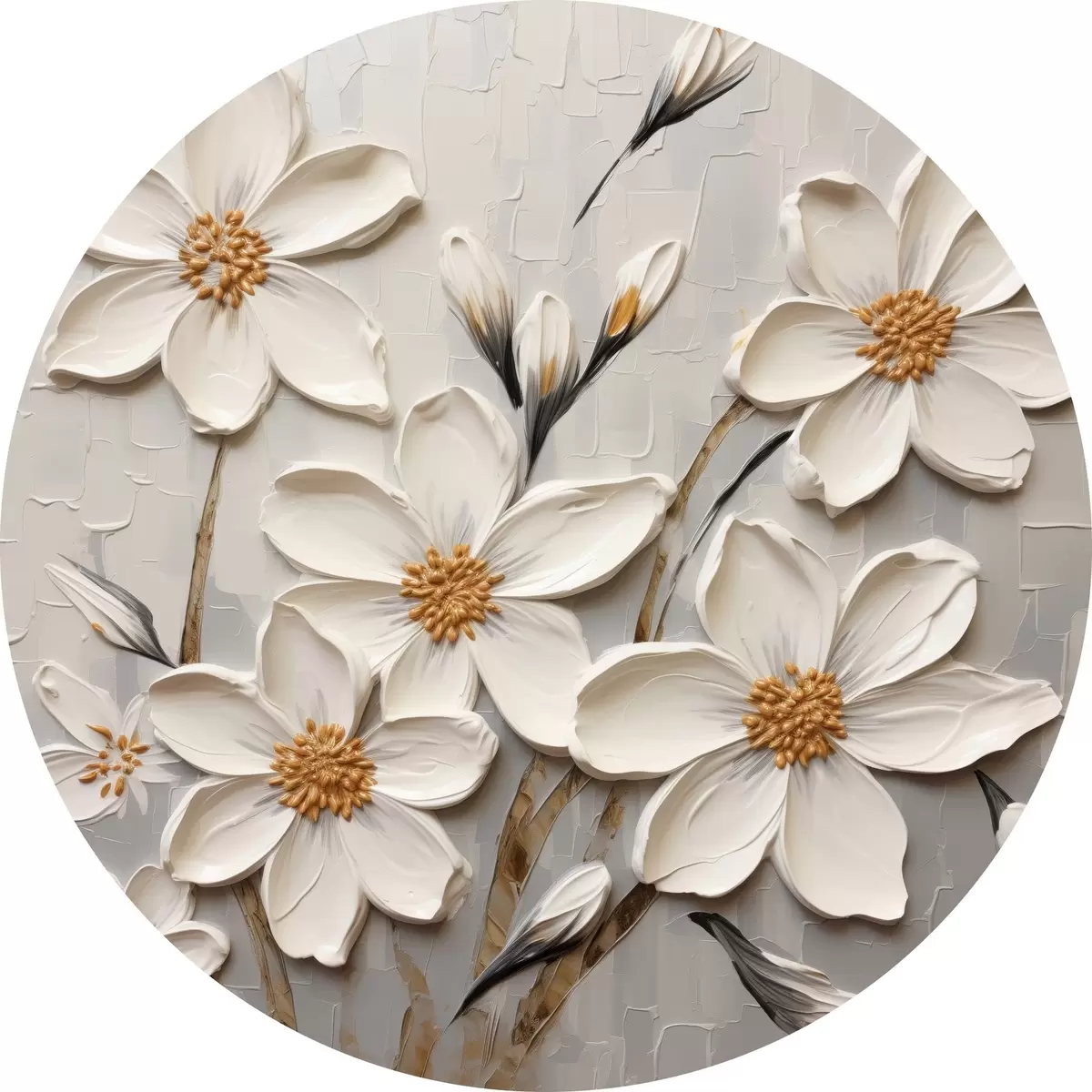 Apaļas gleznas Balti apjomīgi ziedi gleznošanas stilā ar lieliem triepieniem ar otu r43366