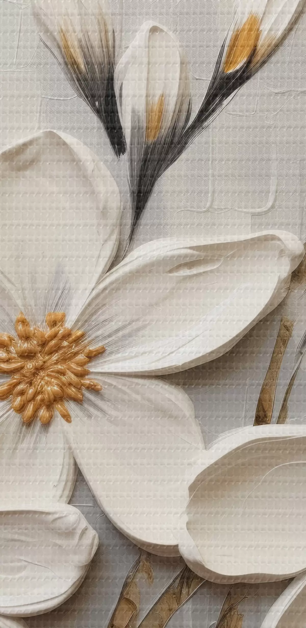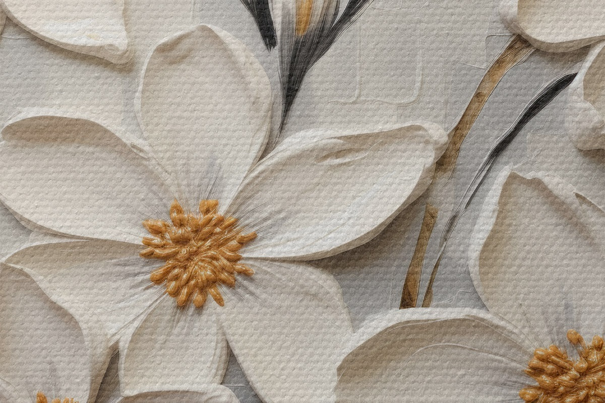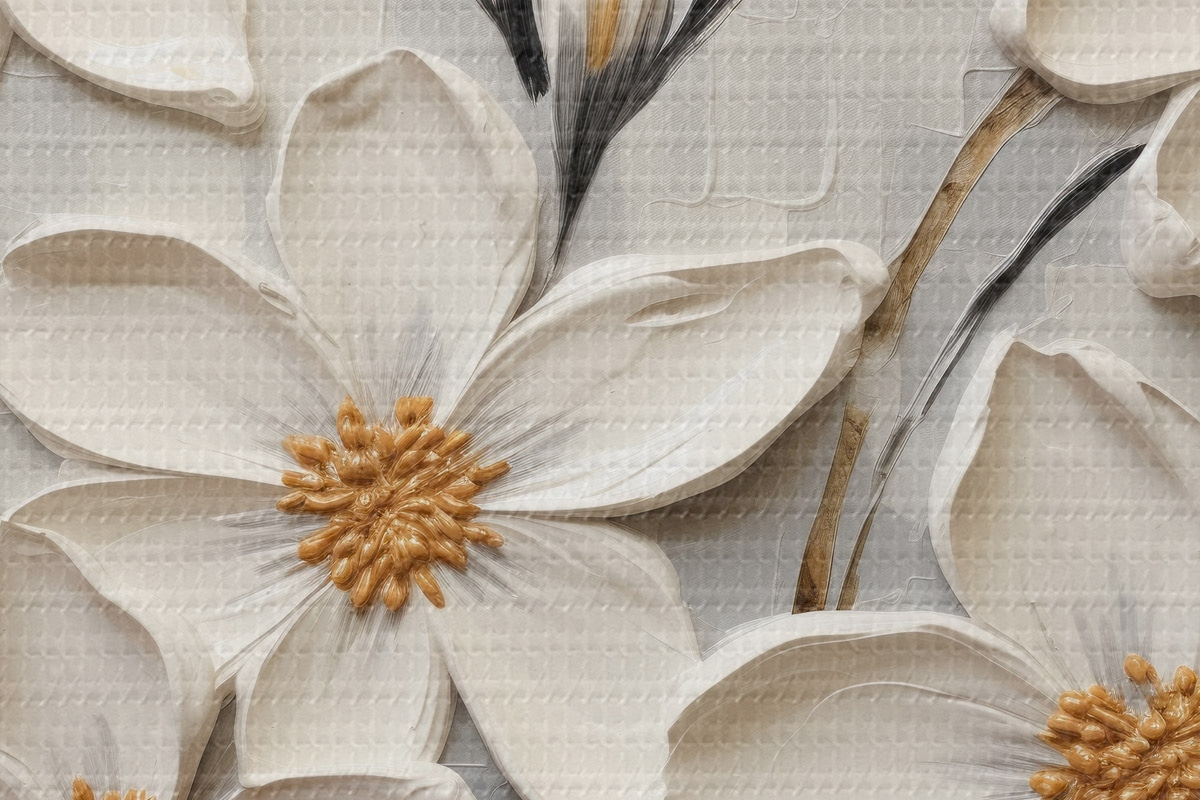 Attēls Balti apjomīgi ziedi gleznošanas stilā ar lieliem triepieniem ar otu Nr r43366