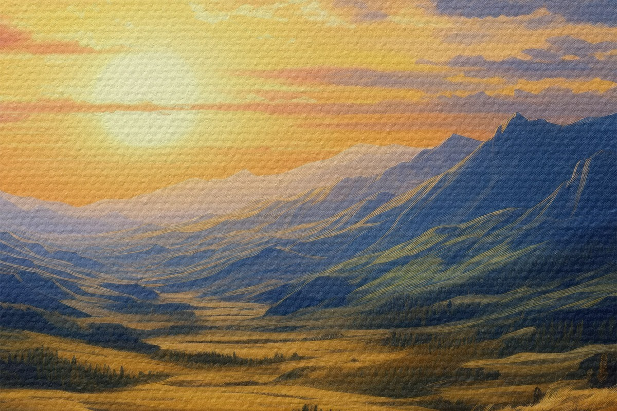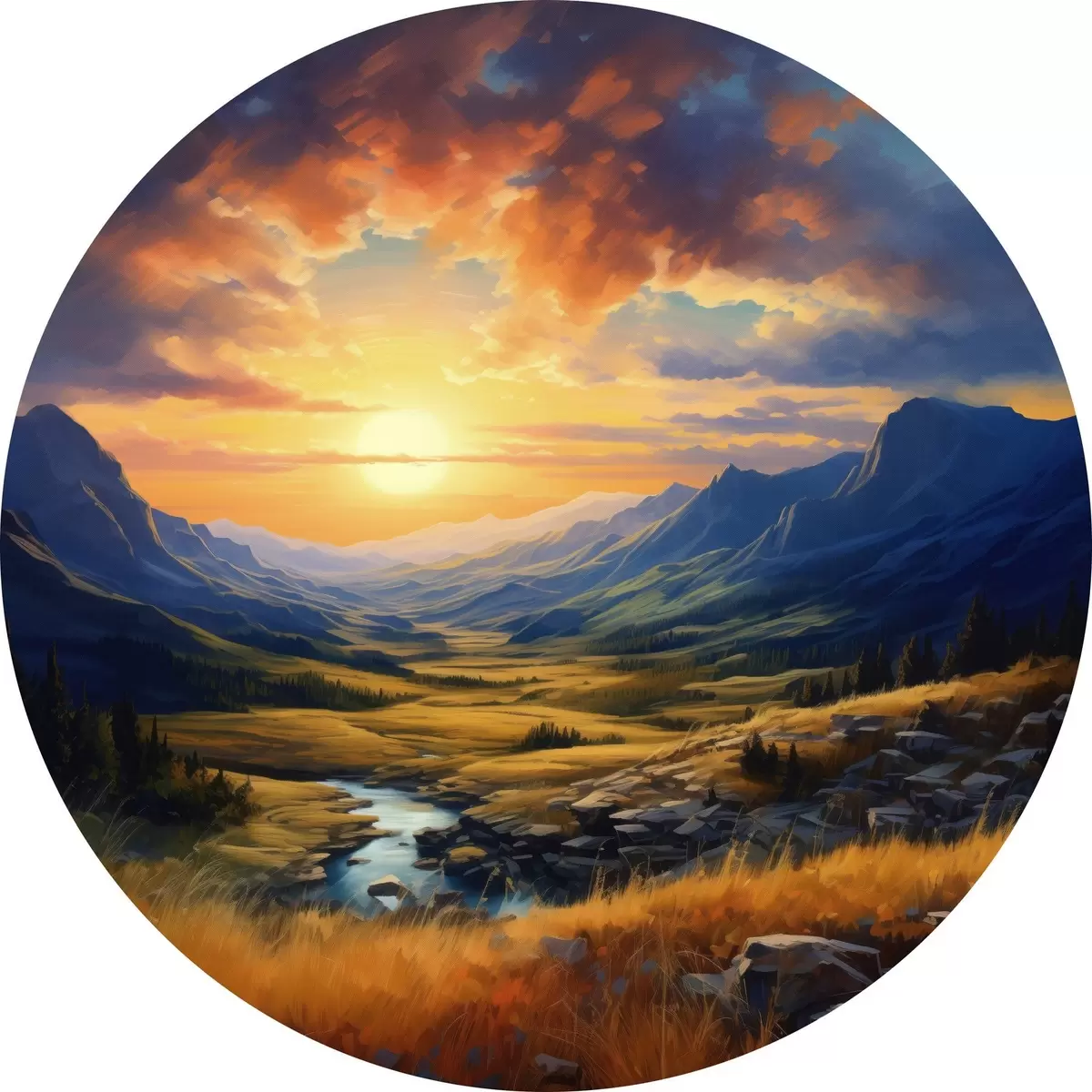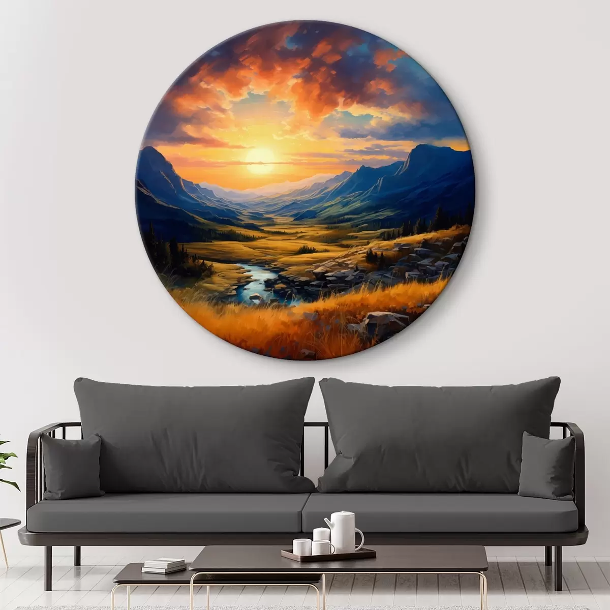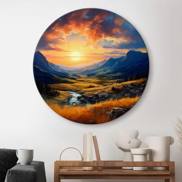 Apaļas gleznas Kalnu ainava saulrieta laikā r43378