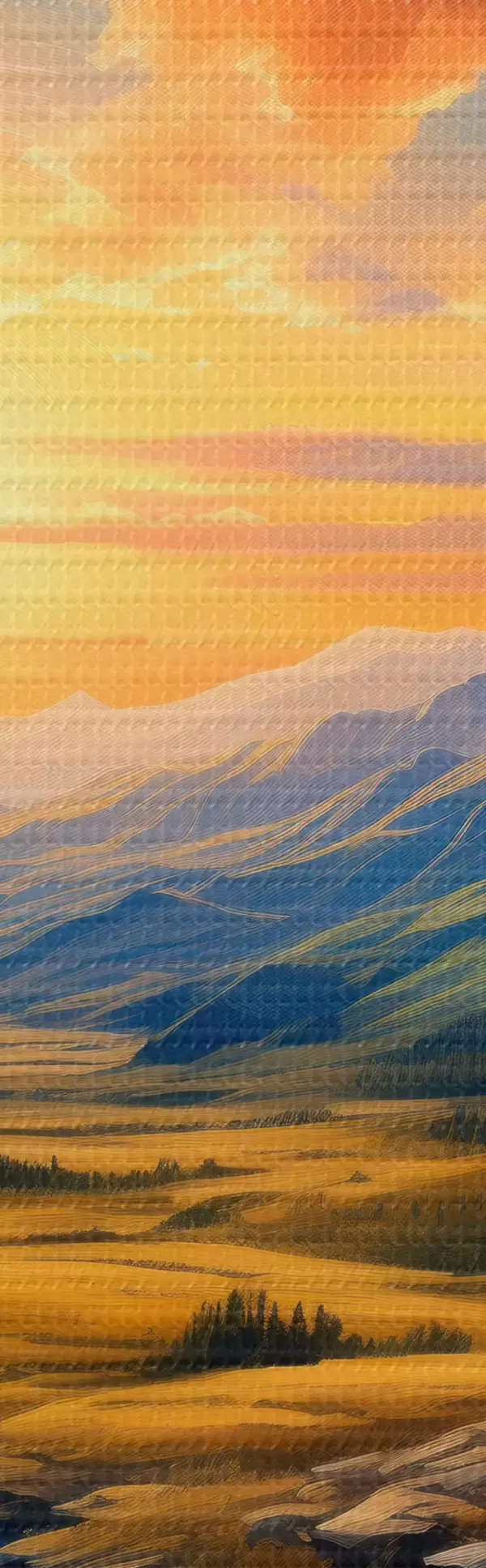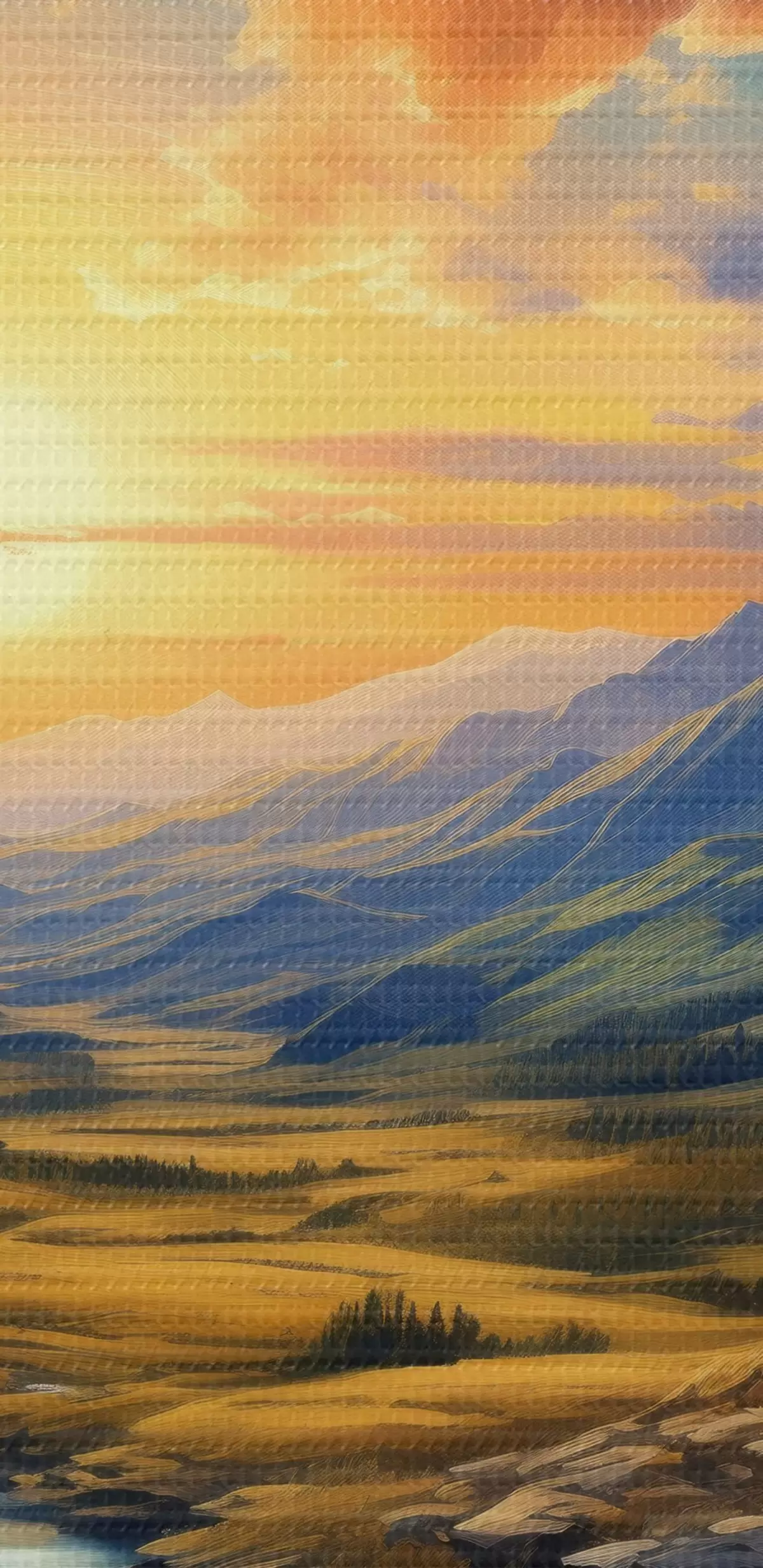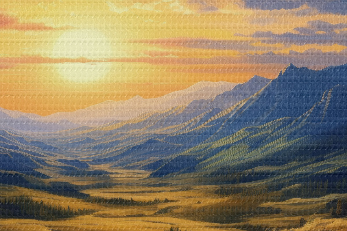 Apaļas gleznas Kalnu ainava saulrieta laikā r43378