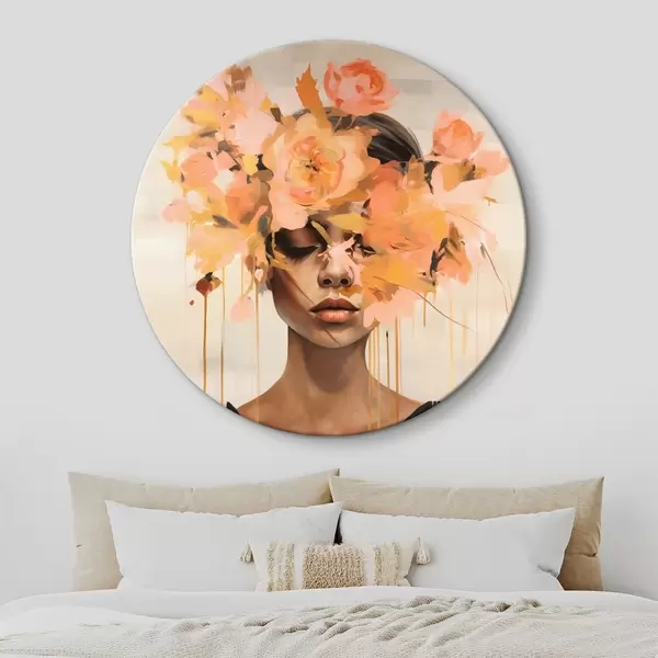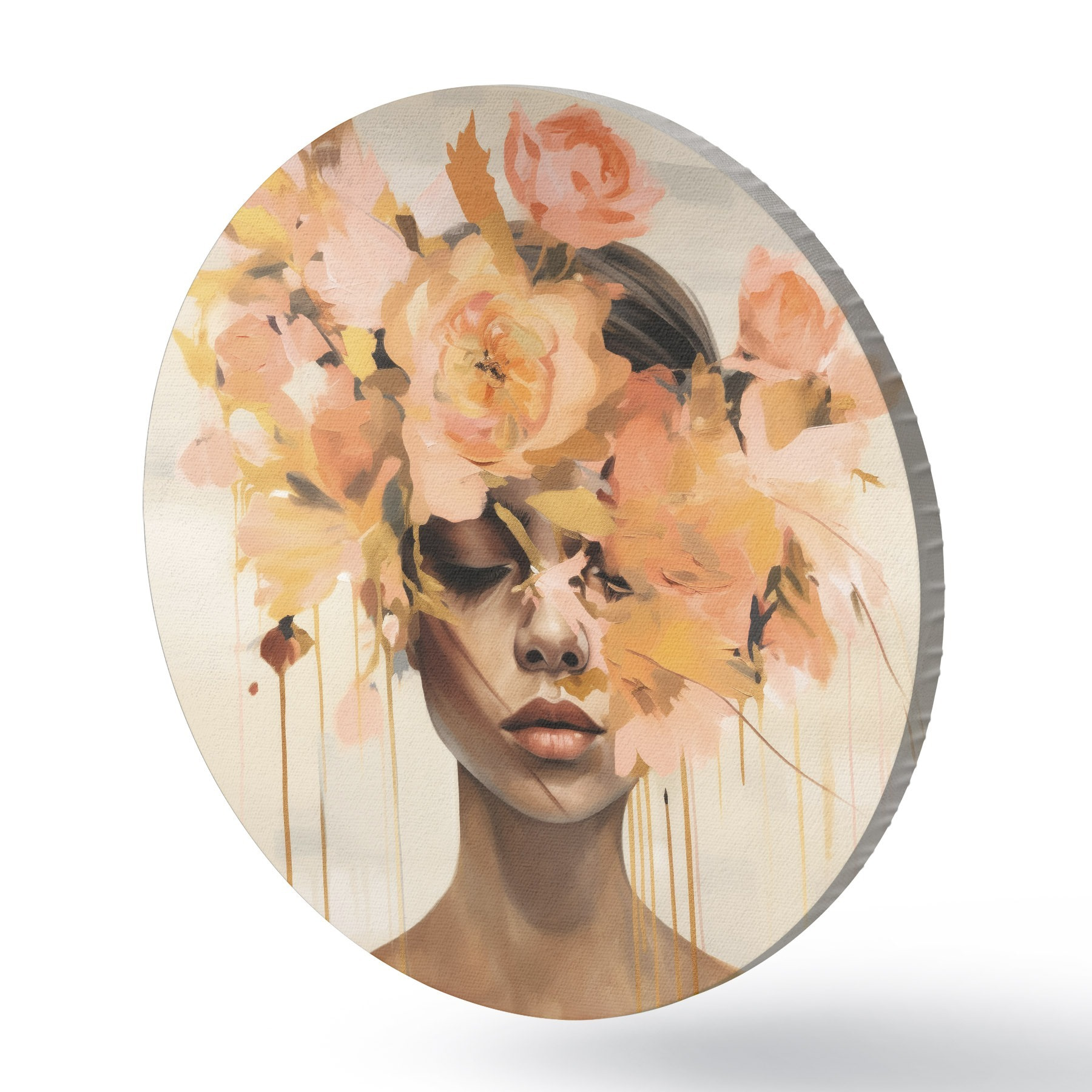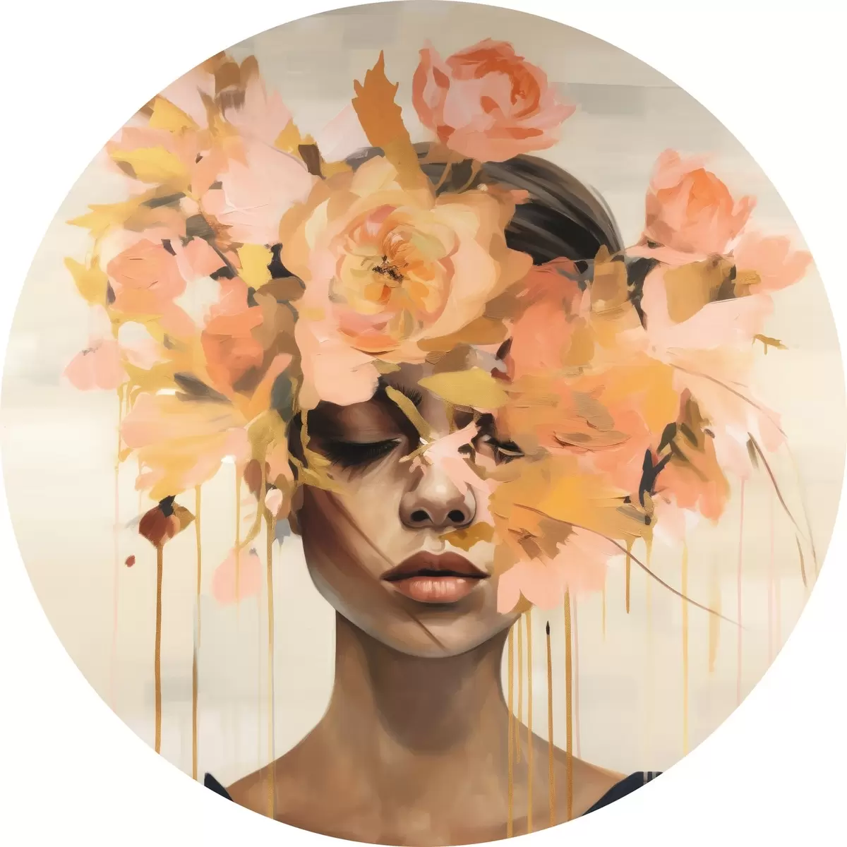 Apaļas gleznas Meitene ar krāsu uz sejas un ziediem uz galvas r43382