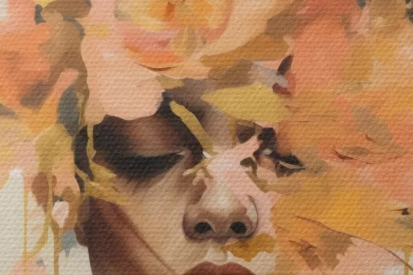 Smalkais diegu pinums uz šī audekla atgādina profesionālu mākslinieku audeklu virsmu.