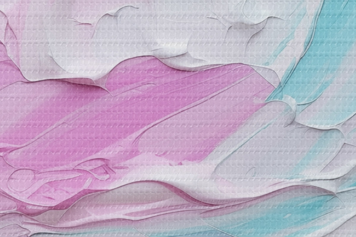 Attēls Abstrakta eļļas glezniecības imitācija ar bieziem triepieniem rozā, baltā un tirkīza krāsā, kas rada faktūras efektu Nr r43393