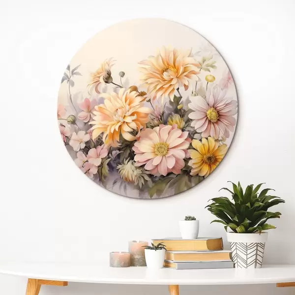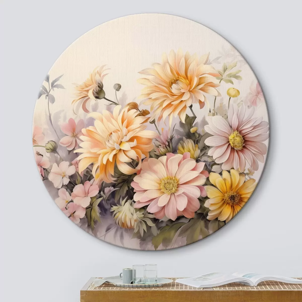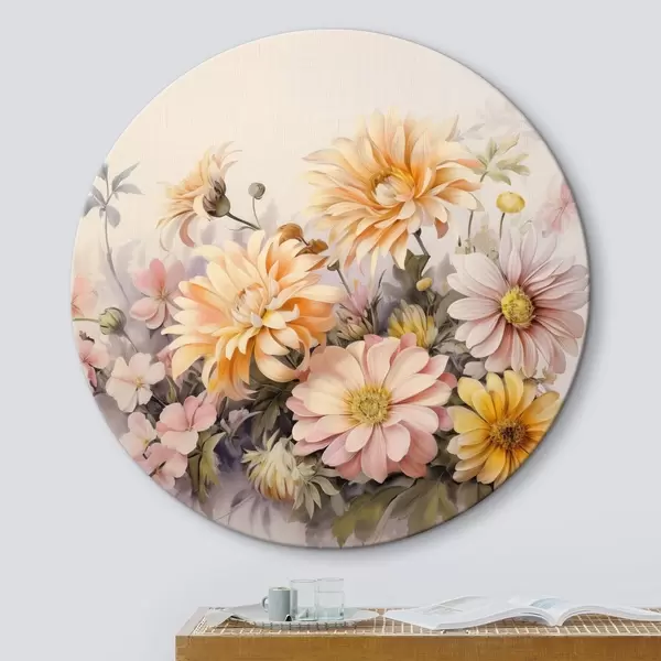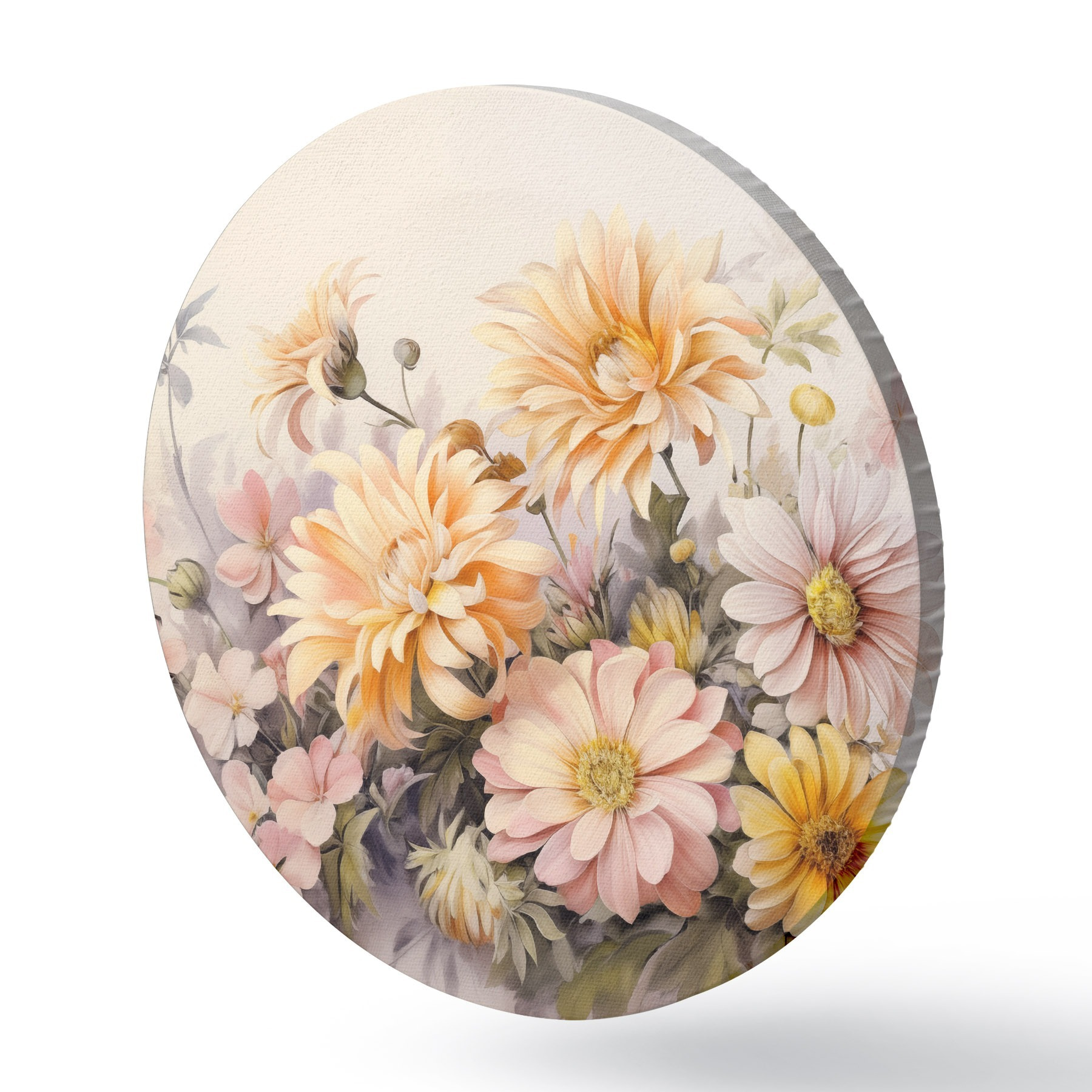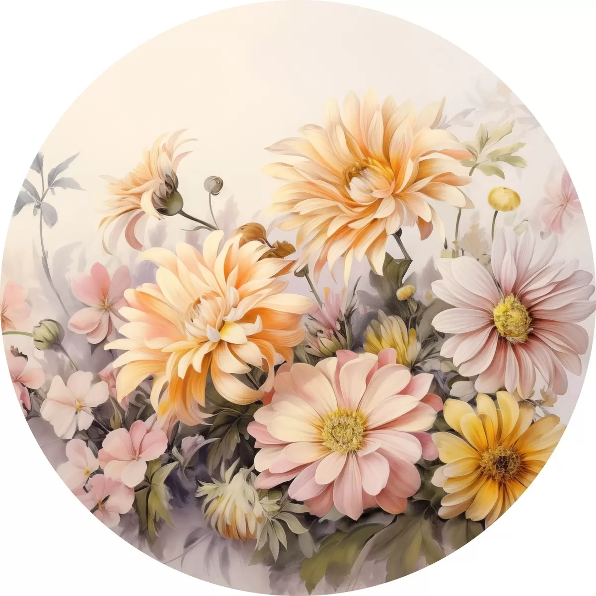 Apaļas gleznas Rozā, dzeltenu un oranžu ziedu kolekcija, viegls fons, maigas krāsas, vintage stils, botāniska ilustrācija r43401