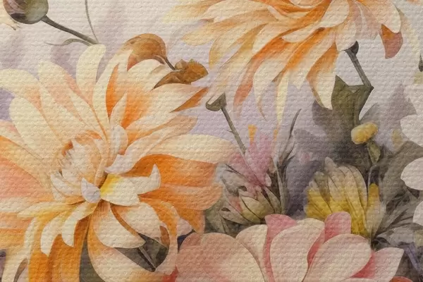 Attēls Rozā, dzeltenu un oranžu ziedu kolekcija, viegls fons, maigas krāsas, vintage stils, botāniska ilustrācija Nr r43401
