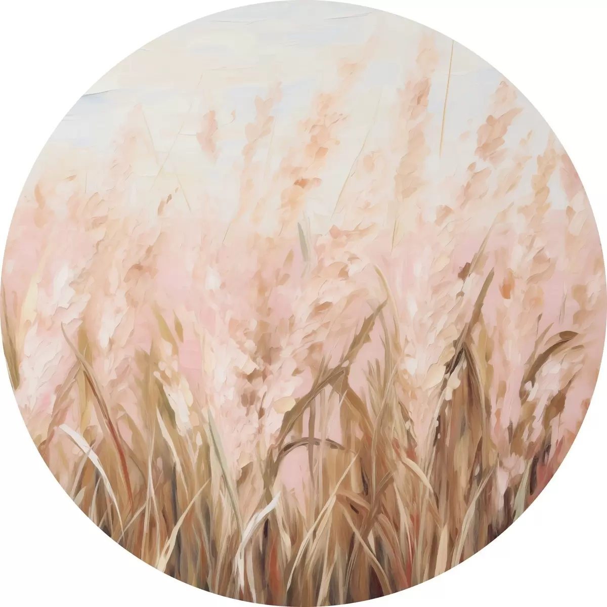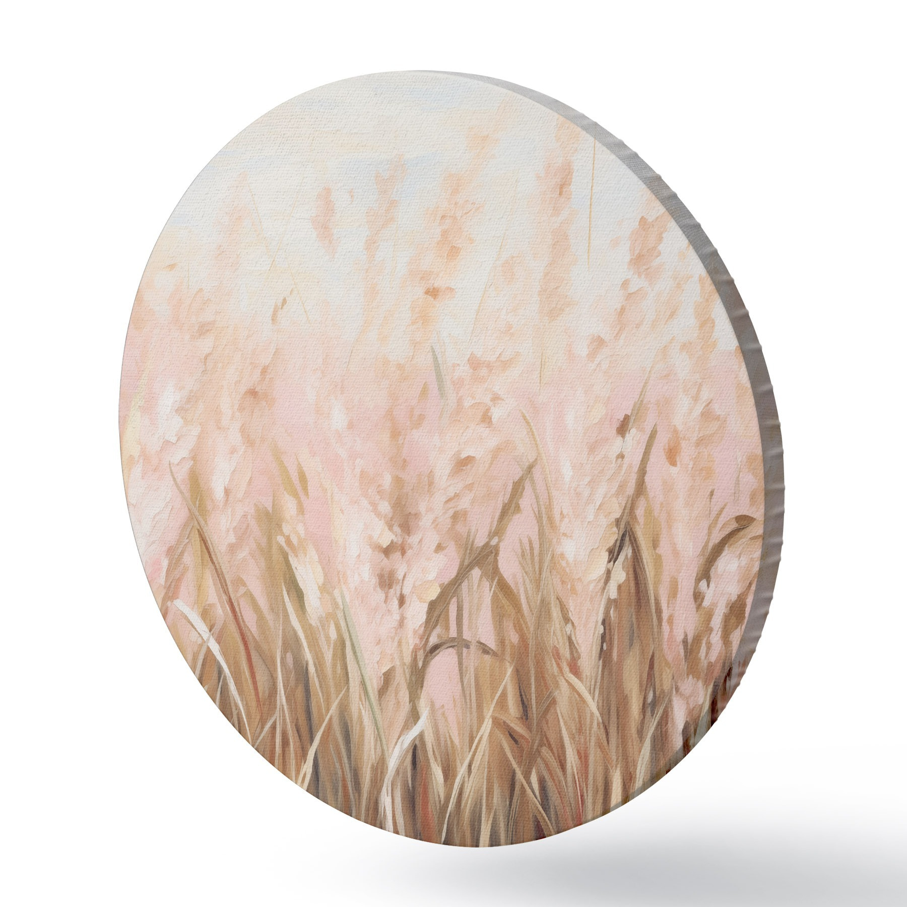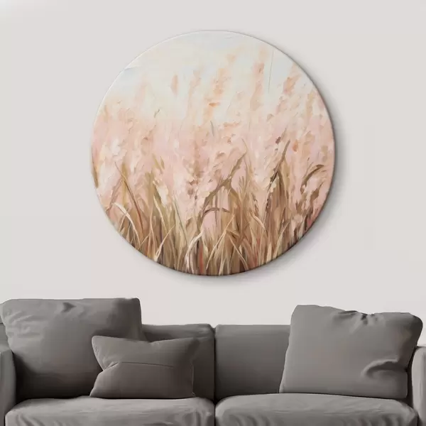 Apaļas gleznas Pampas zāliena lauks ar rozā un brūniem toņiem, mīksti triepieni ar otu, abstraktā eļļas glezna mākslas imitācija r43403