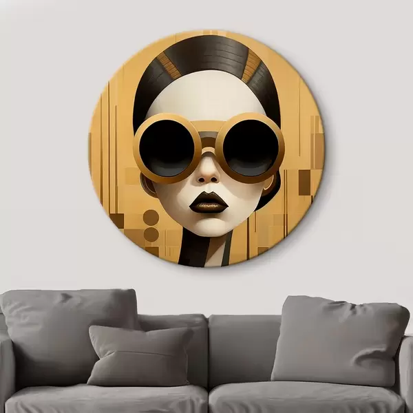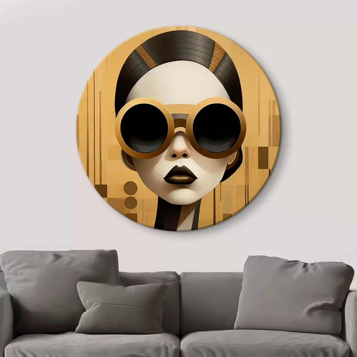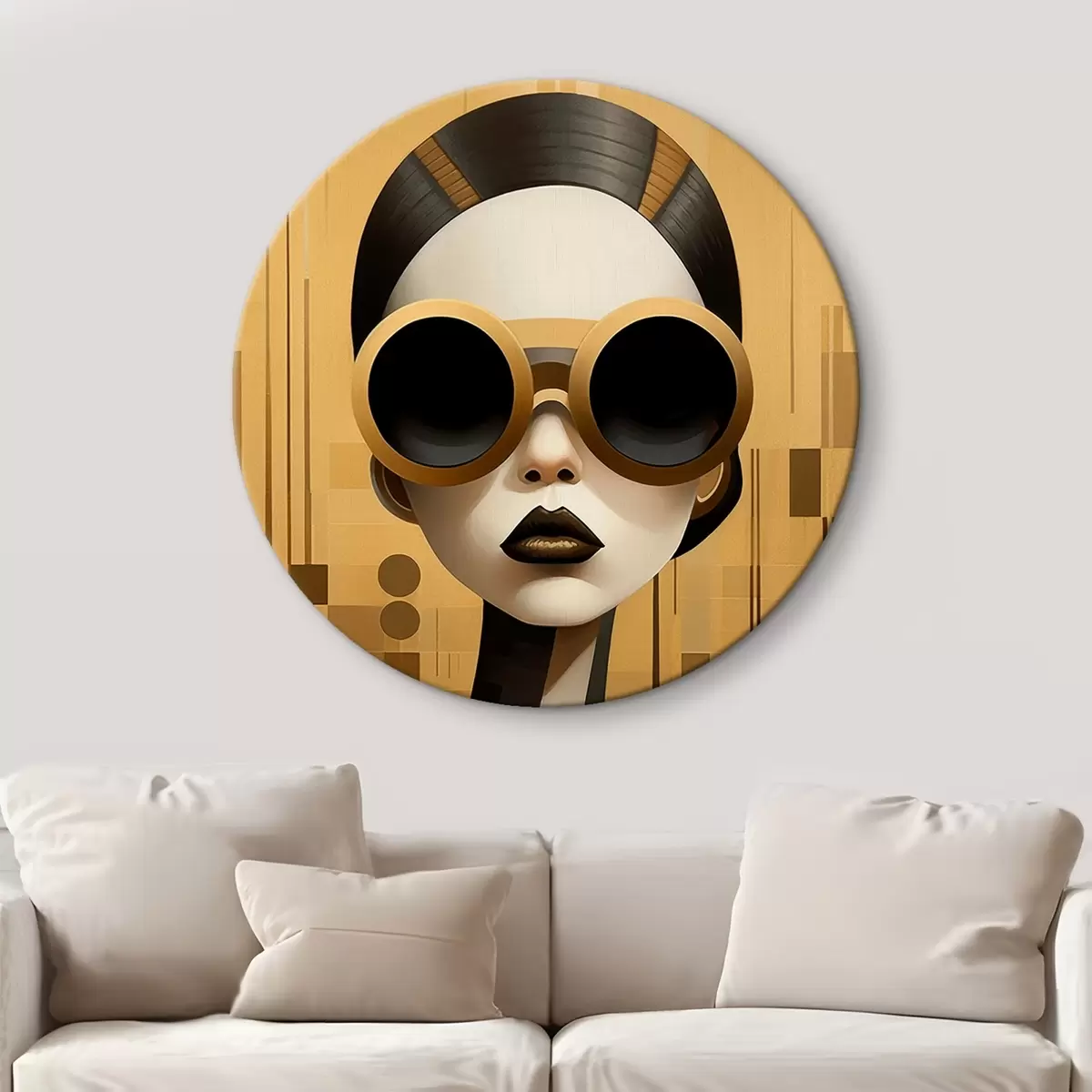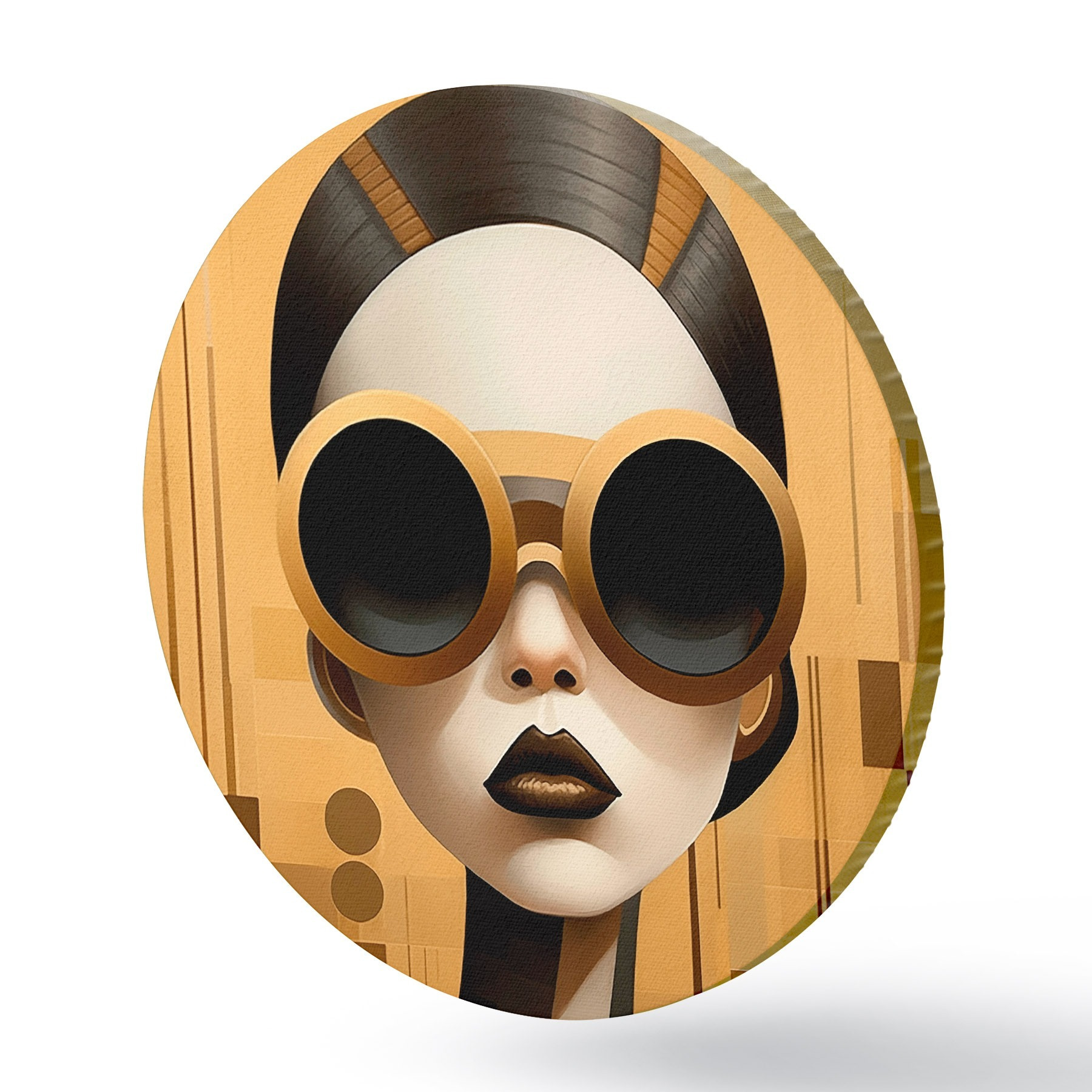 Apaļas gleznas Dekoratīvs sievietes portrets retro stilā r43415
