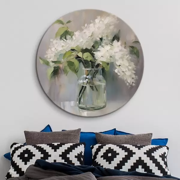 Apaļas gleznas Balta ceriņi vāzē glezniecības imitācija r43439