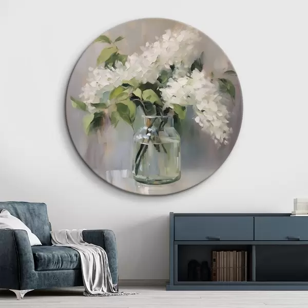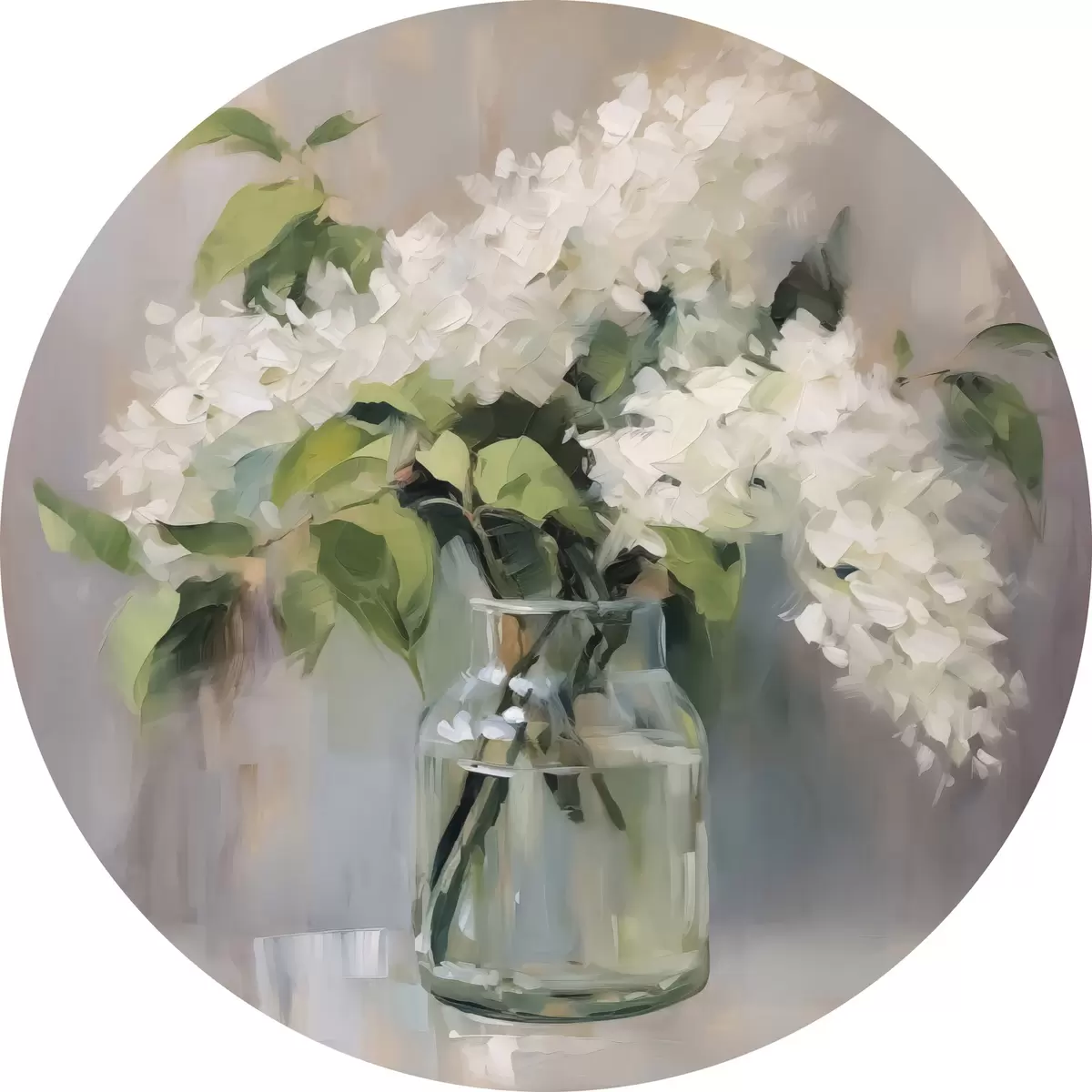 Apaļas gleznas Balta ceriņi vāzē glezniecības imitācija r43439