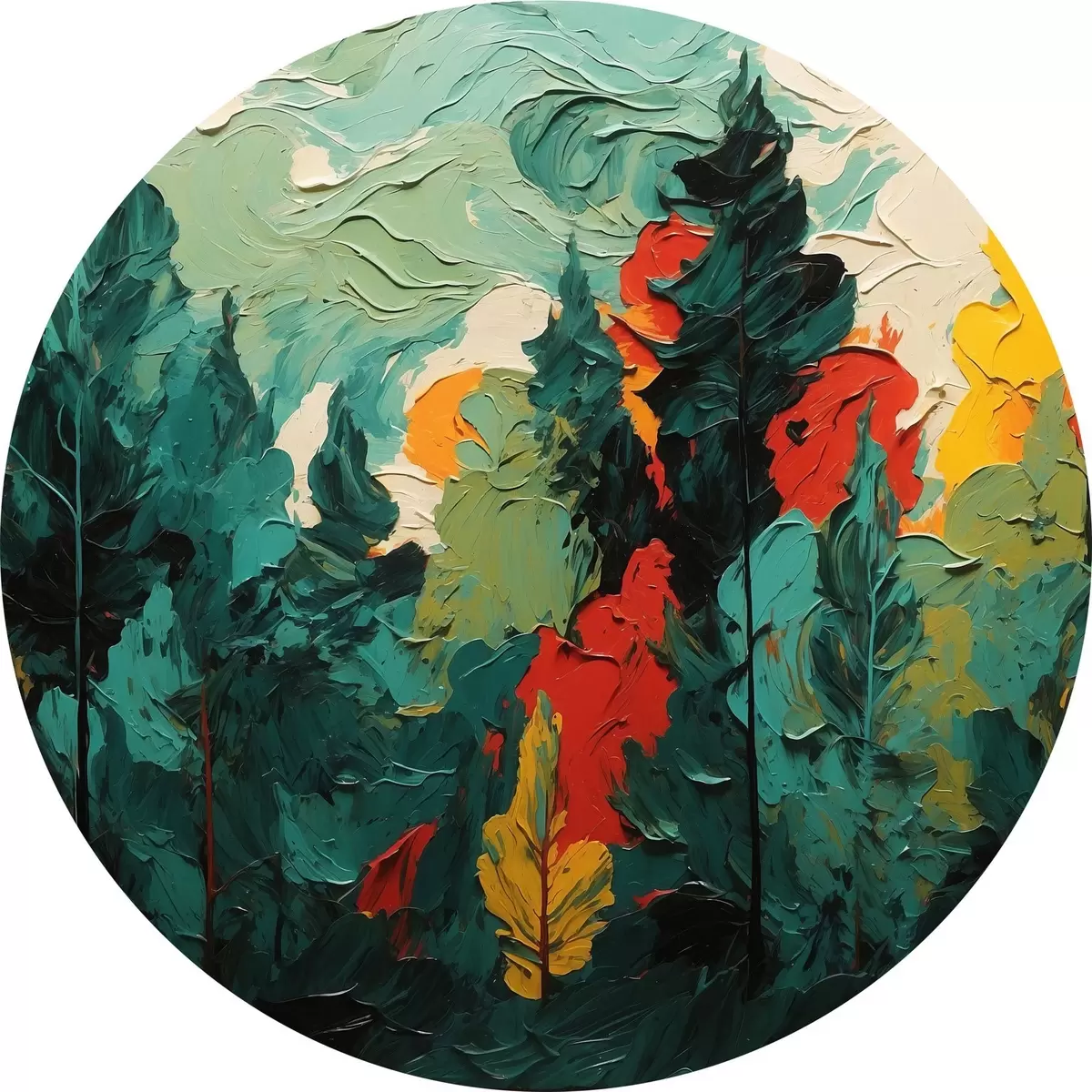 Apaļas gleznas Melnais mežs eļļas gleznošanas stilā r43444