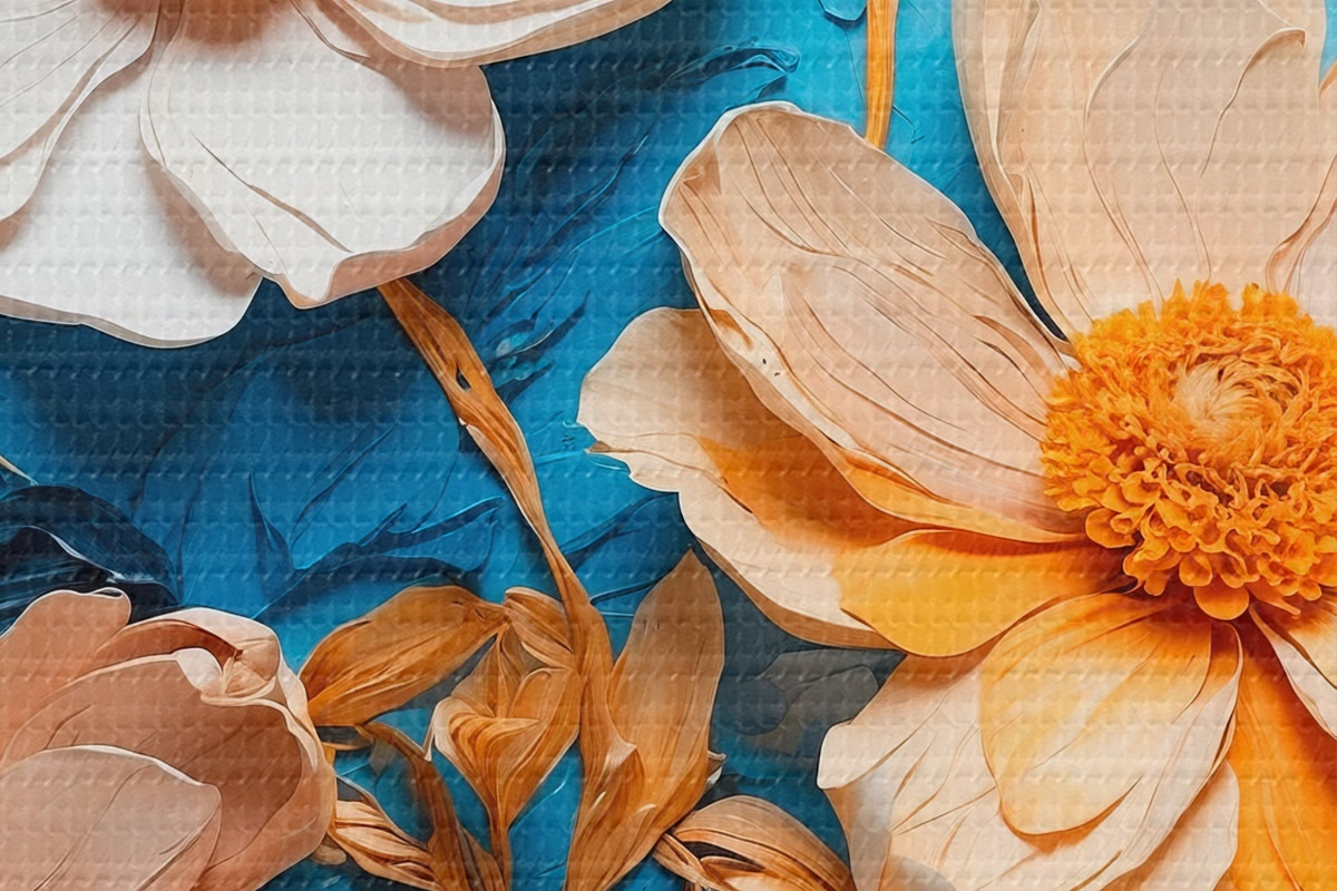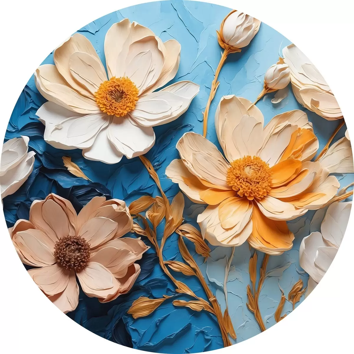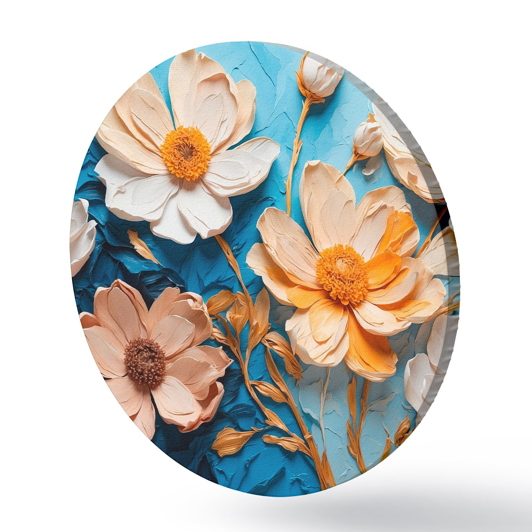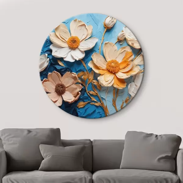 Apaļas gleznas Balti ziedi uz zila fona r43446
