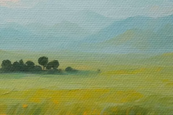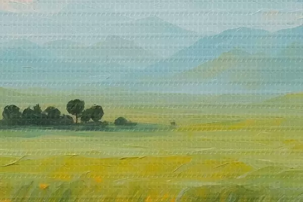 Smalkais diegu pinums uz šī audekla atgādina profesionālu mākslinieku audeklu virsmu.