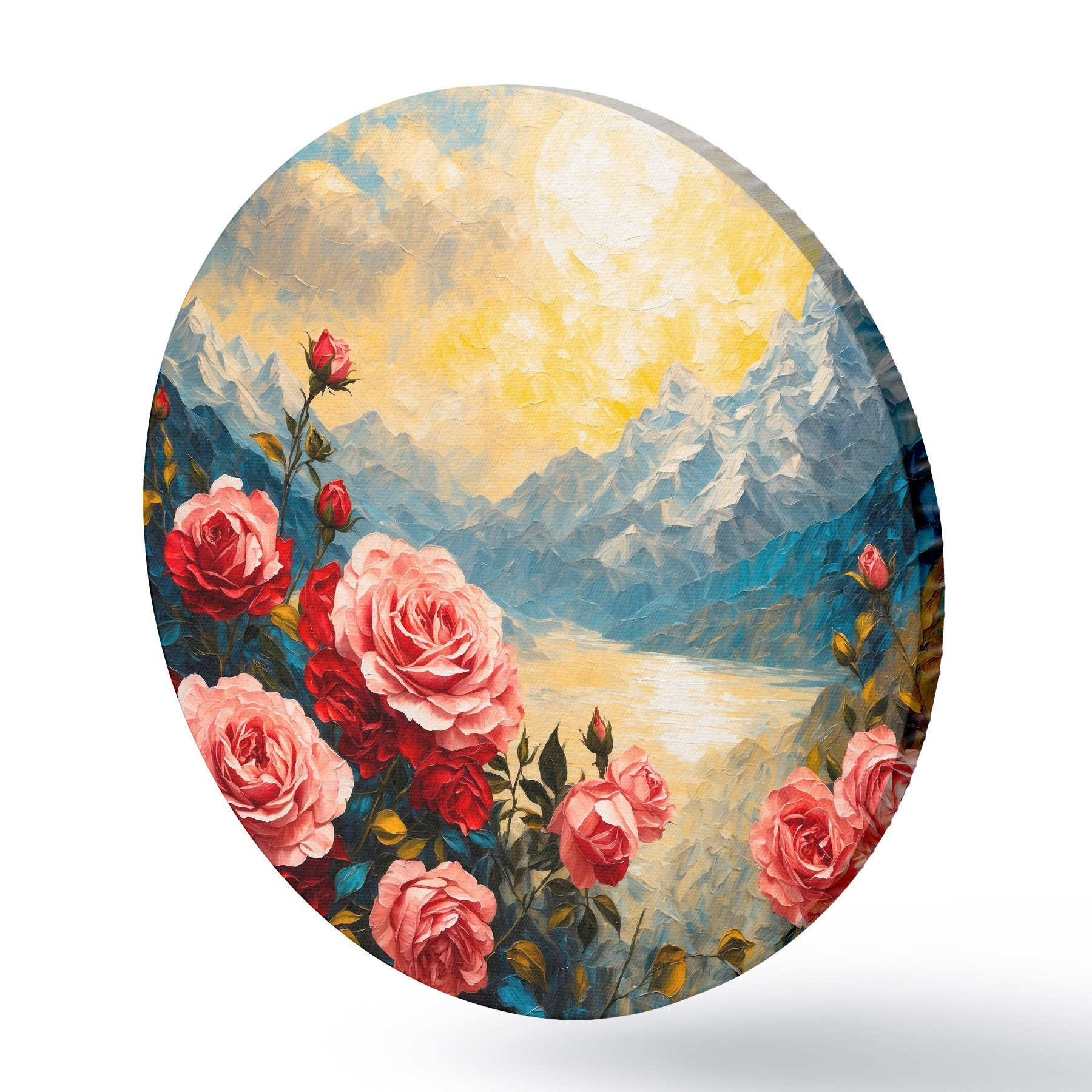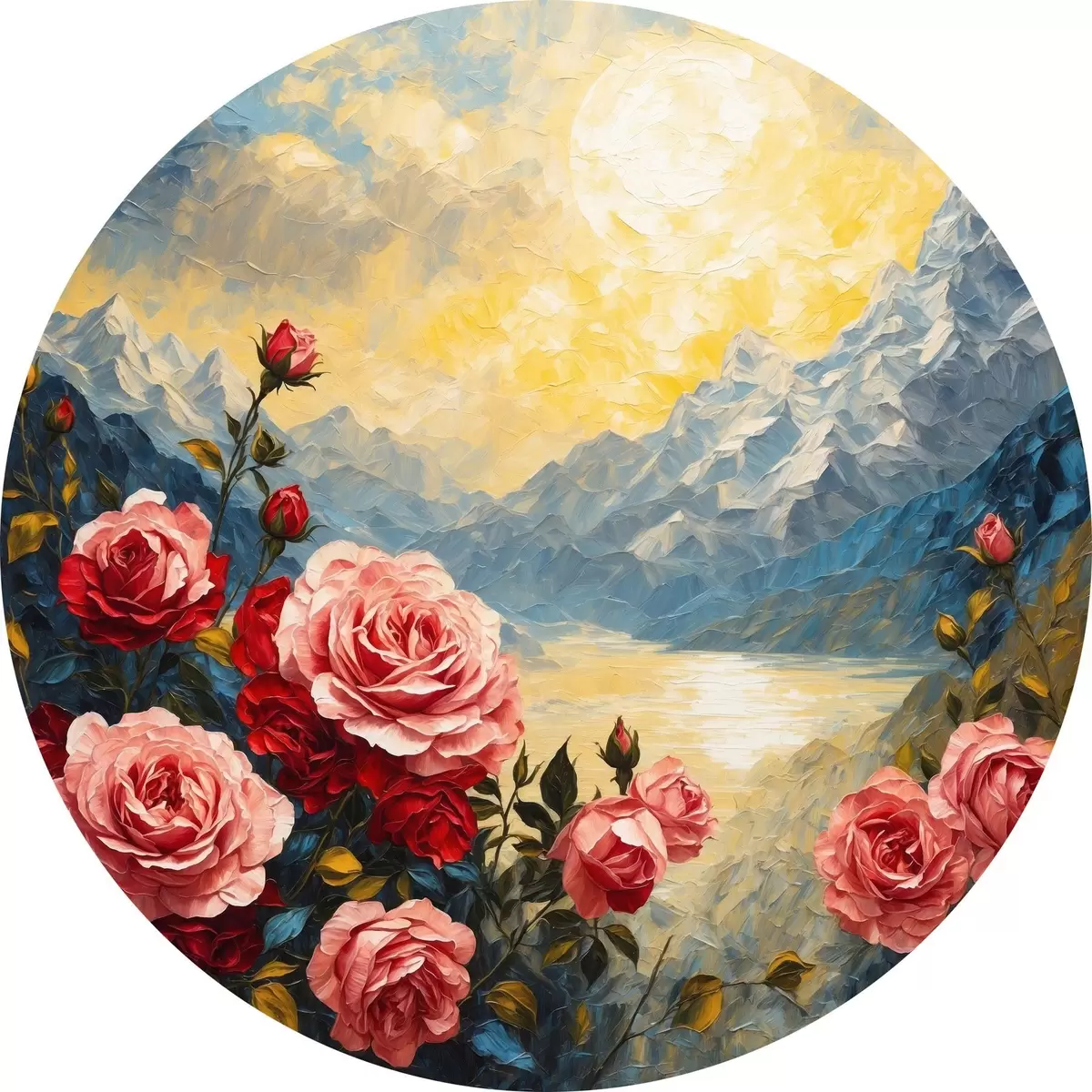Apaļas gleznas Rozes uz kalnu fona eļļas glezna stilā r43457