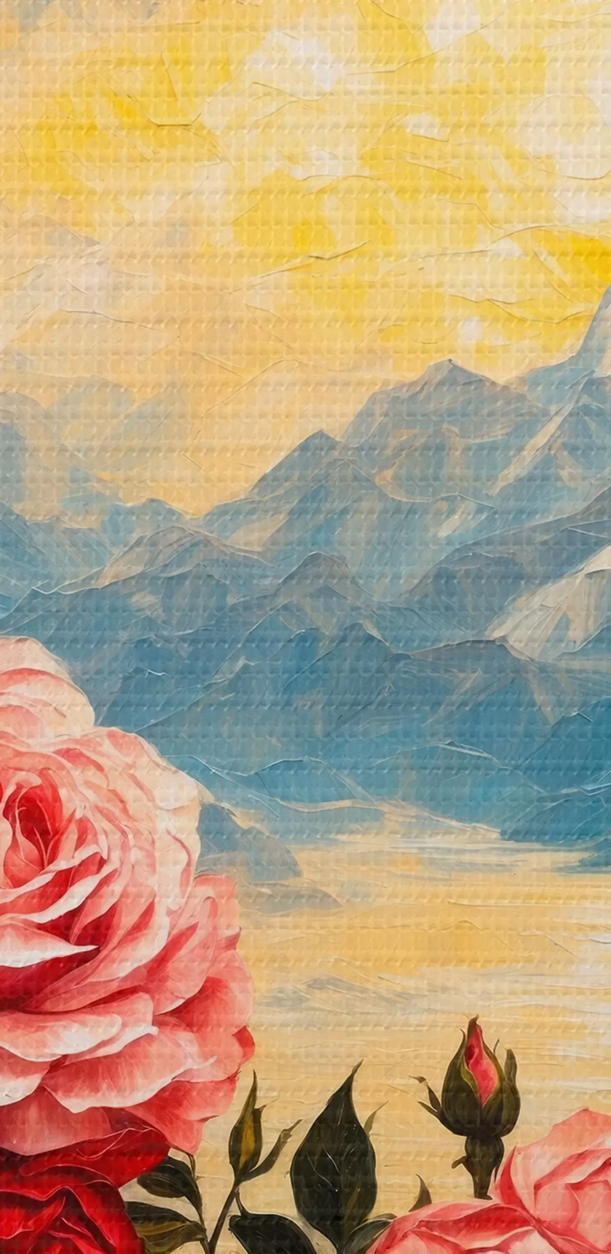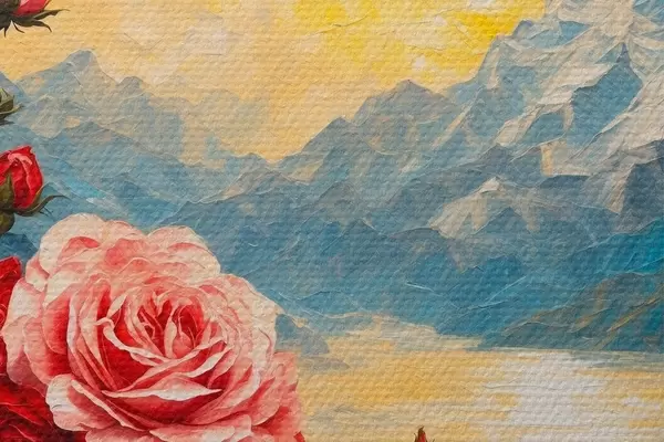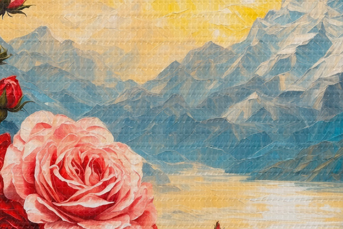 Attēls Rozes uz kalnu fona eļļas glezna stilā Nr r43457