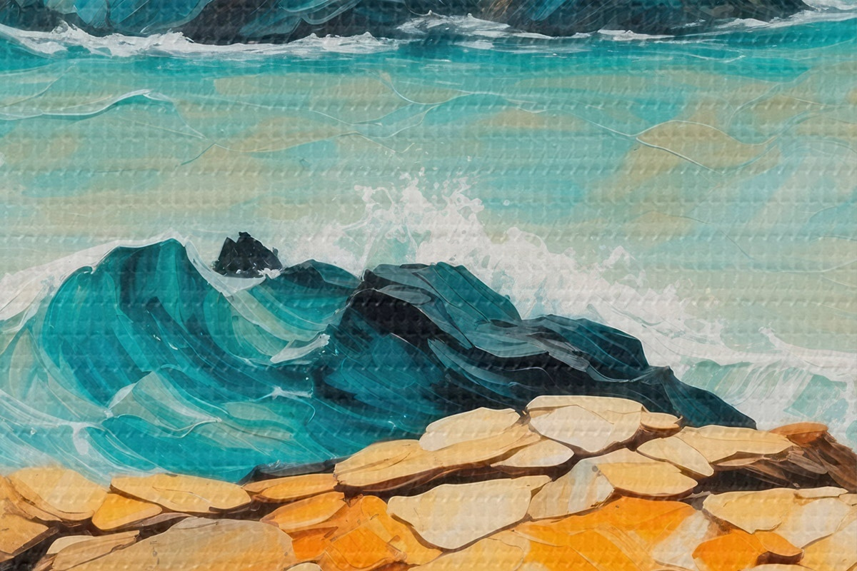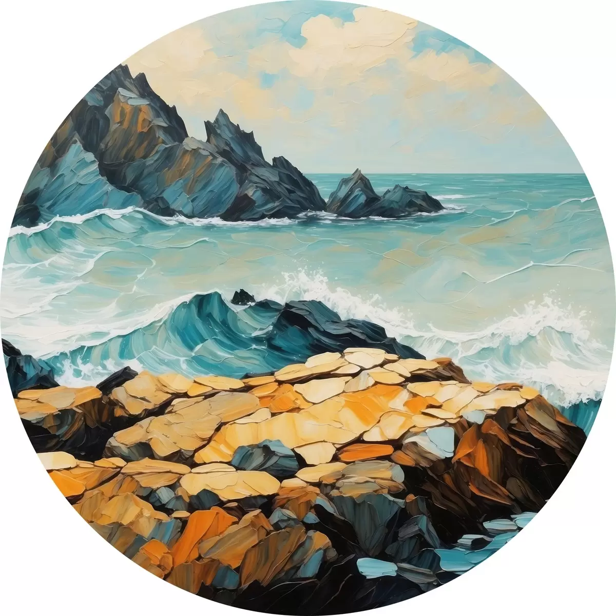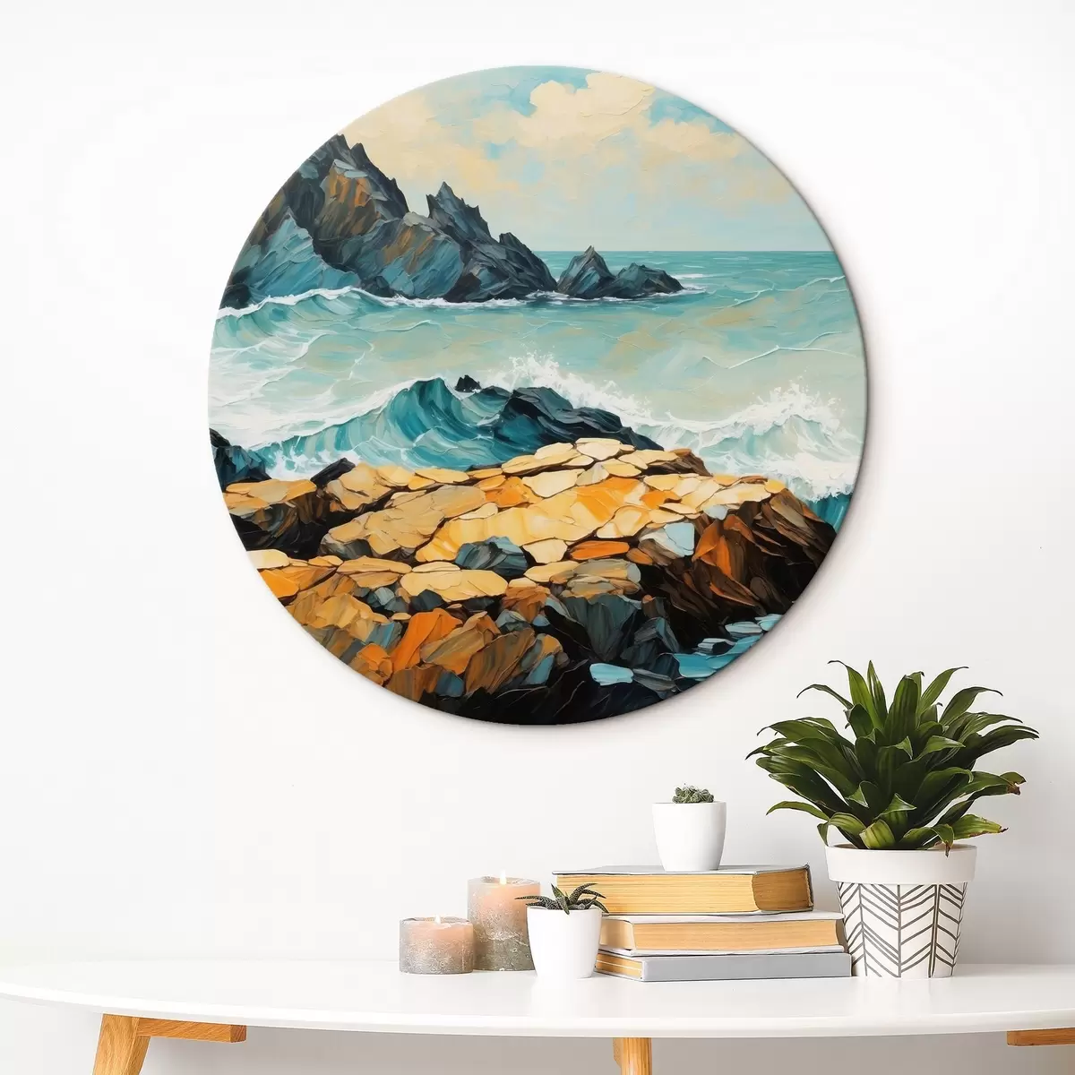Apaļas gleznas Viļņi ietriecas klintīs r43458