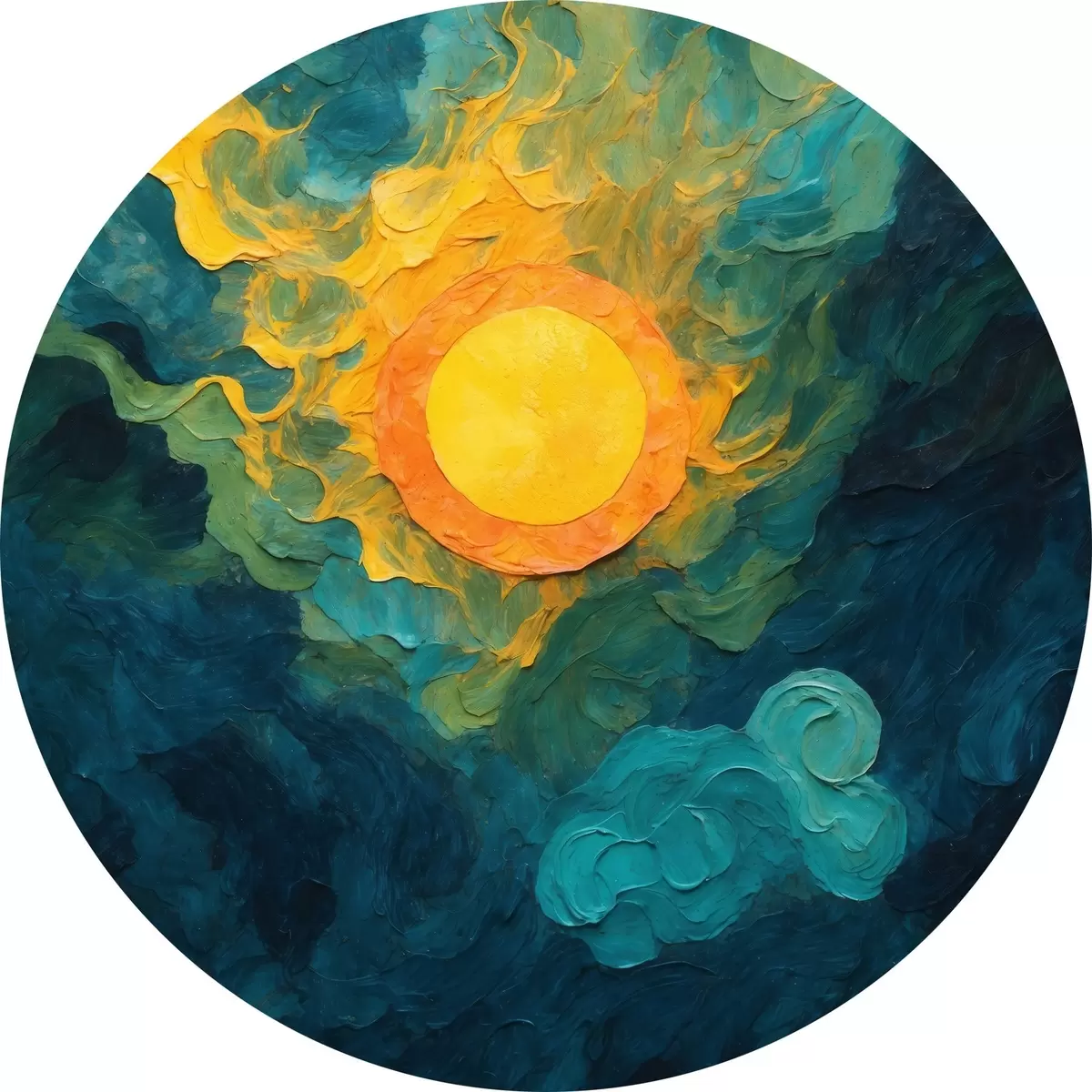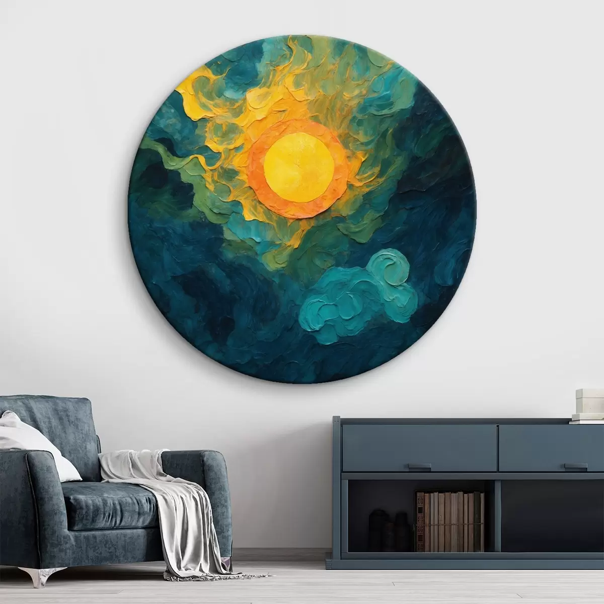 Apaļas gleznas Saule uz tumša fona eļļas gleznošanas stilā r43459
