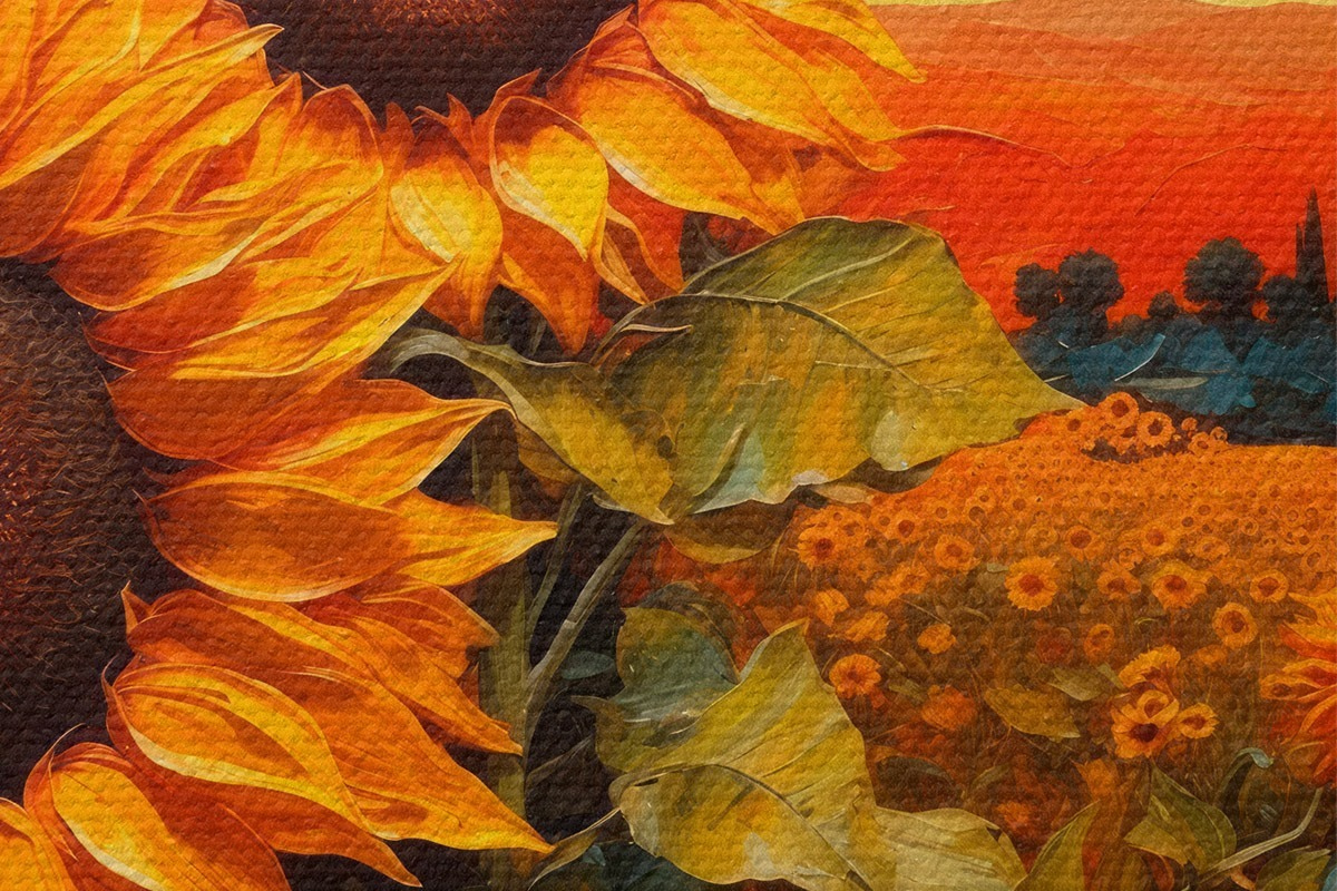 Attēls Saulespuķu lauks saulrieta laikā Nr r43460