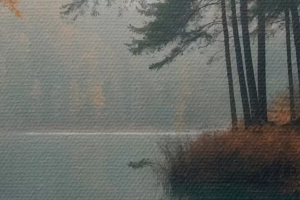 Smalkais diegu pinums uz šī audekla atgādina profesionālu mākslinieku audeklu virsmu.