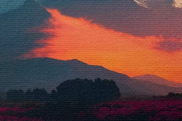 Smalkais diegu pinums uz šī audekla atgādina profesionālu mākslinieku audeklu virsmu.