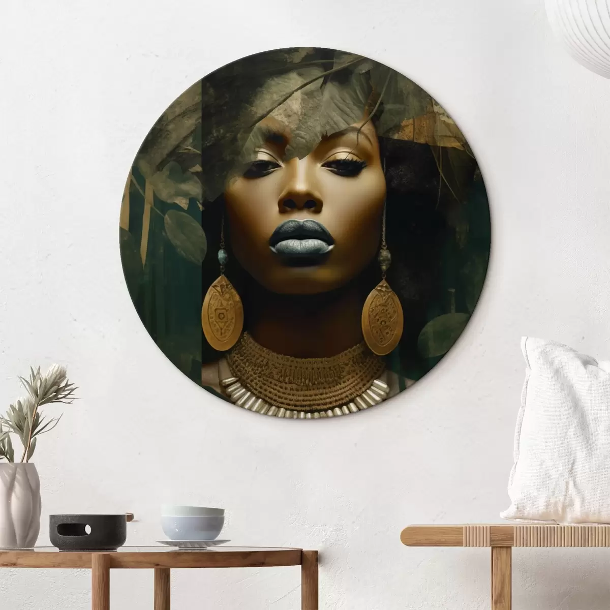 Apaļas gleznas Meitenes seja uz abstrakta meža fona r43466