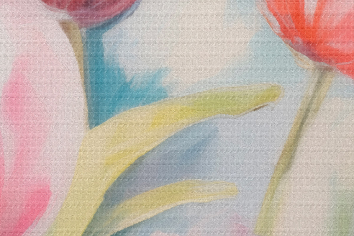 Smalkais diegu pinums uz šī audekla atgādina profesionālu mākslinieku audeklu virsmu.