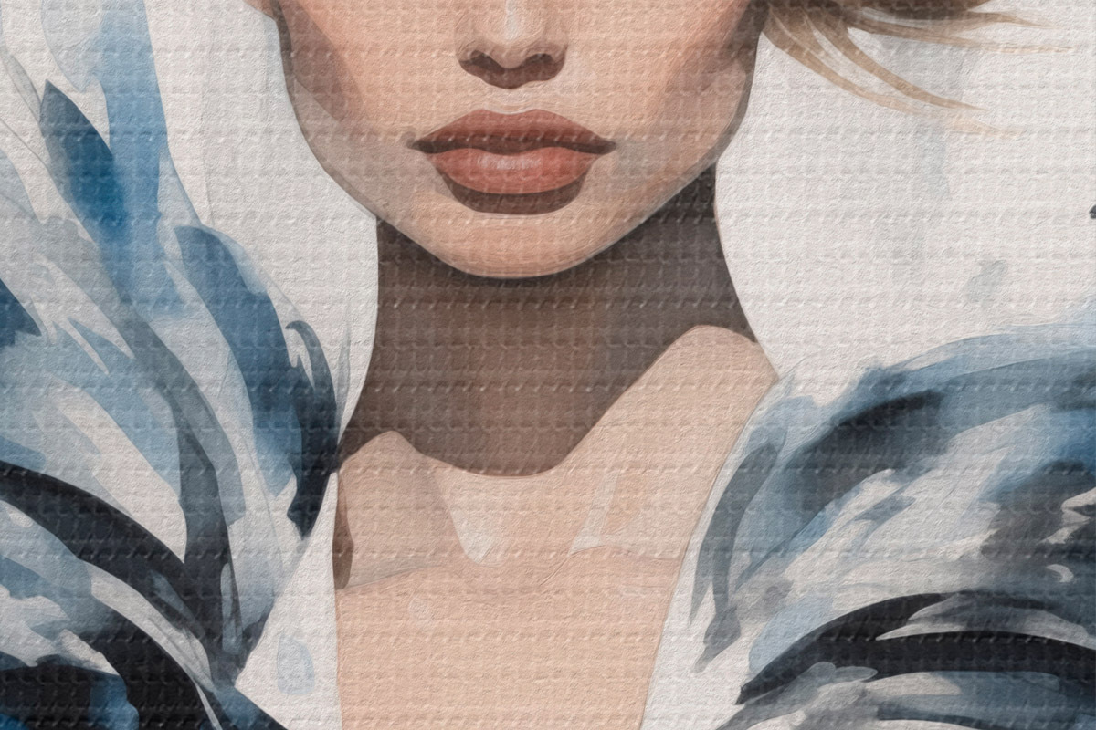 Smalkais diegu pinums uz šī audekla atgādina profesionālu mākslinieku audeklu virsmu.